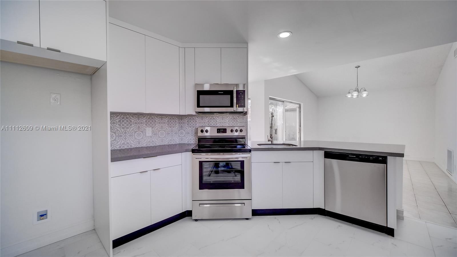***Great opportunity for first time owners. Recently remodeled 2 bedroom and two bathroom home with 1 car garage. Garage can easily be converted to 3rd bedroom. House has Brand New roof, New Impact windows and doors, New kitchen and master bath. Large tiled patio area. Property is located in a very pleasant neighborhood, near shopping, schools, restaurants. Community has multiple pools, tennis courts and more amenities. **Impact Sliders are to be installed mid-Nov**