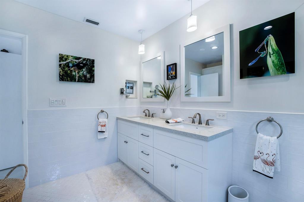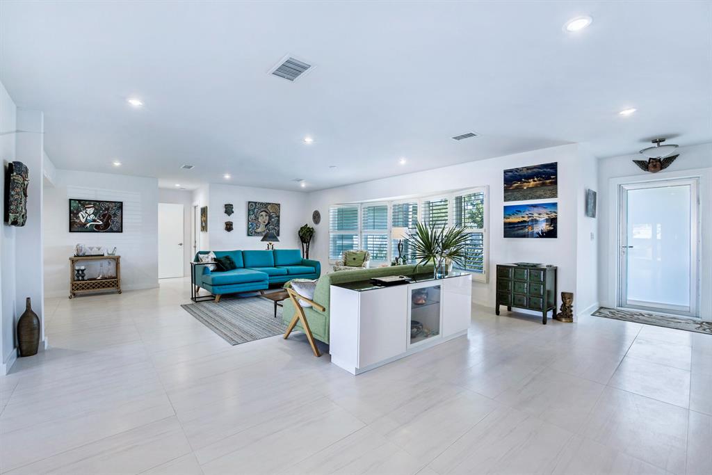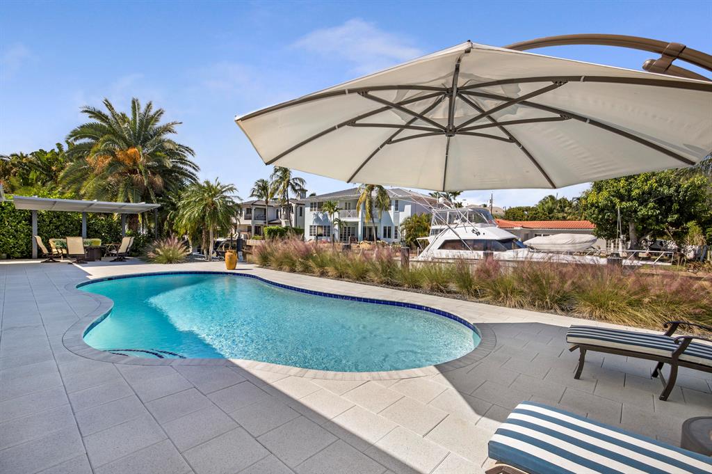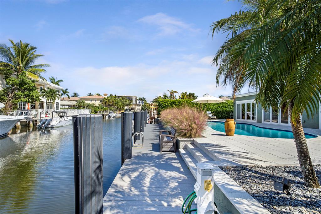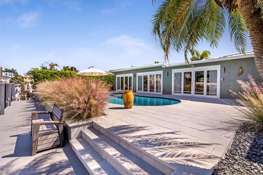 This Stunning ''no expense spared'' Remodeled ranch has it all. Features include a new metal roof, impact glass through out, large white porcelain tile floors, Gorgeous kitchen with quartz island and stainless appliances, and even the cast iron pipes and plumbing were replaced with PVC all the way out to the main city hook ups. The large dining room is adjacent to the kitchen, living area and open to the back patio w/ 4 large French doors. The living area is huge and includes an entertaining area complete with a bar, fridge and icemaker. There are 4 bedrooms w/ one set up as a guest suite w/ a morning kitchen. The outdoor area features a deep salt water pool, a new 60 ft trex dock, new pilings and 30/ 50 amp power. A true Boater's Dream and all close to Restaurants, Shops and Beaches