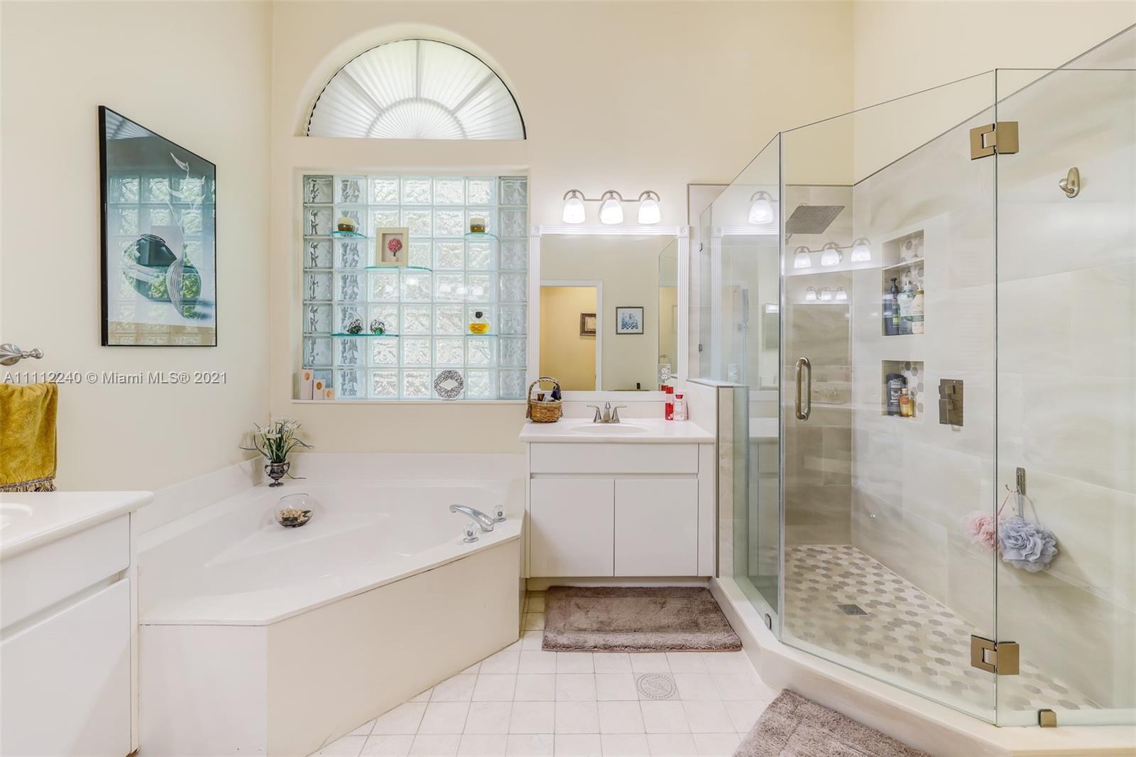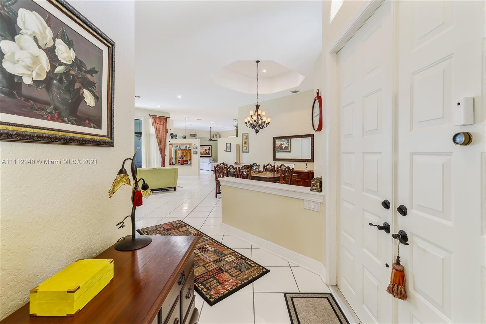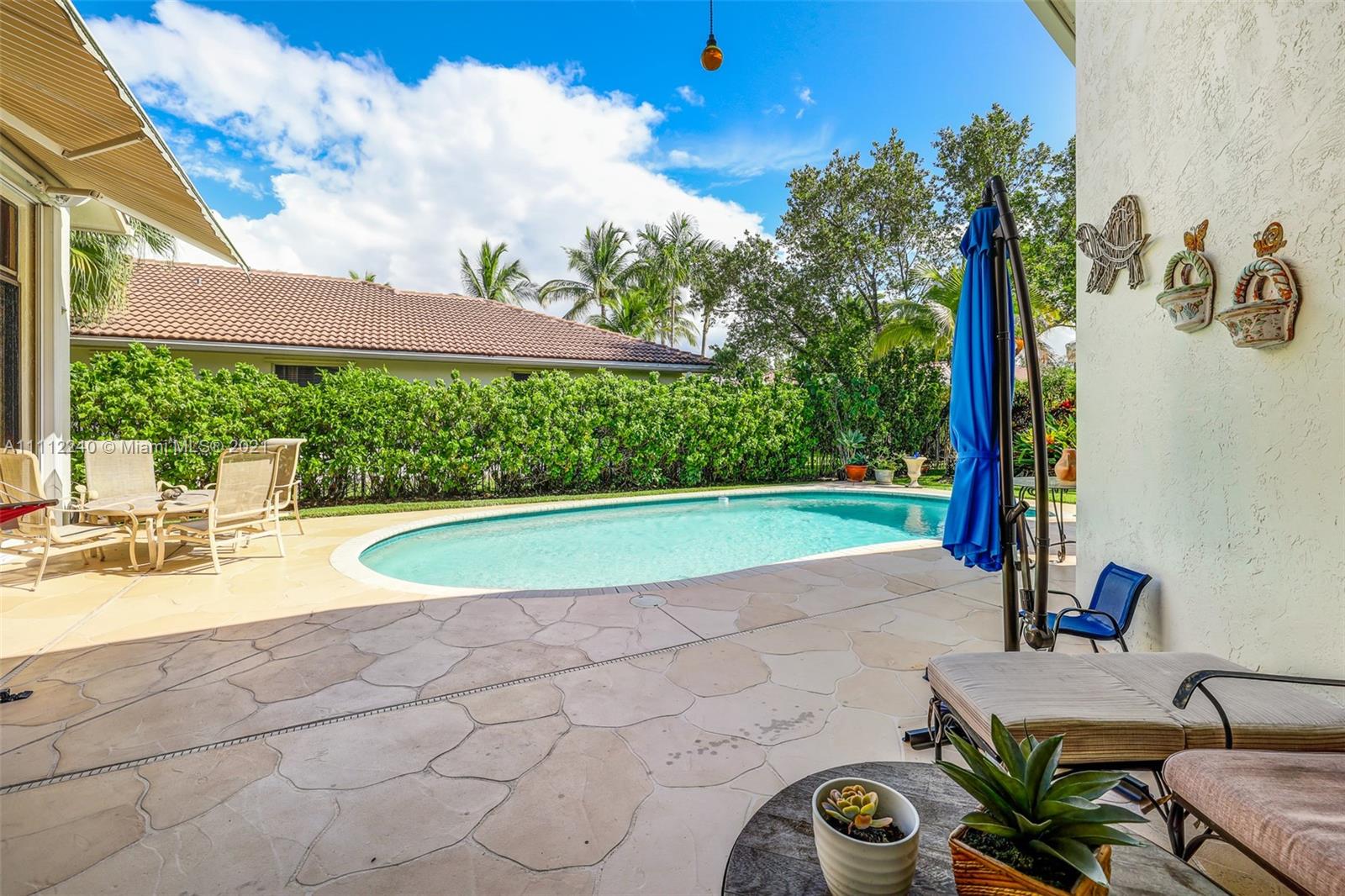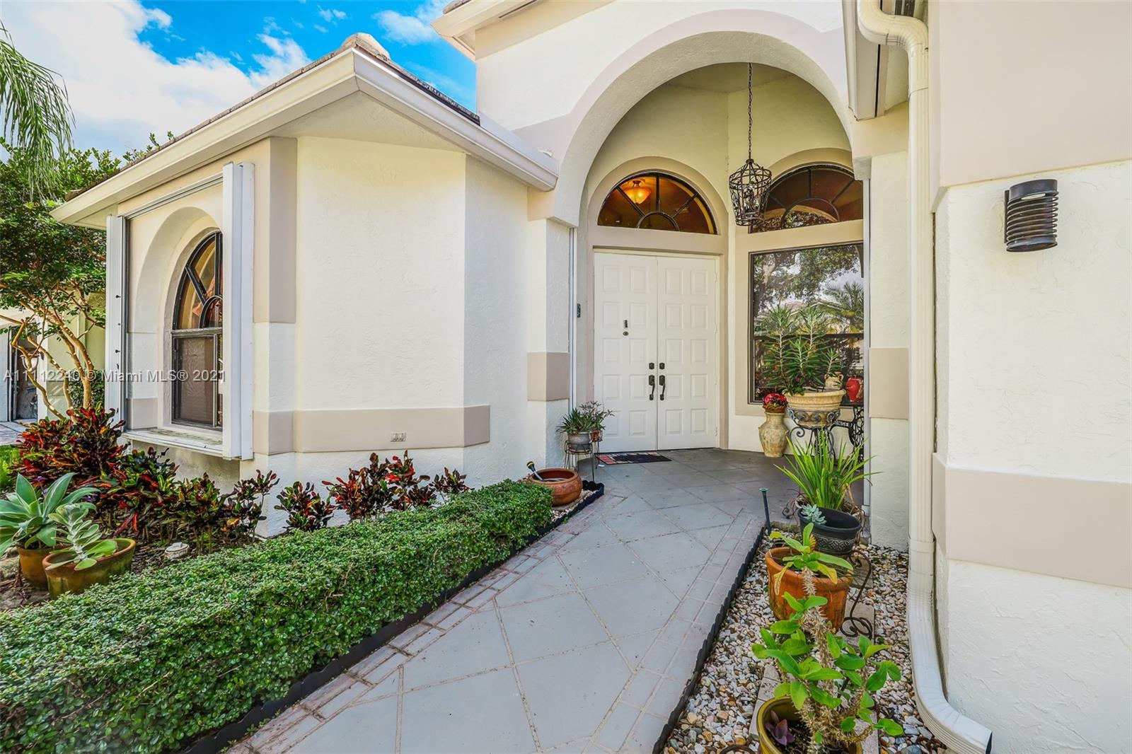 Elegant & turn-key one story in the exclusive gated Jasmine Island. This amazing 2,909 Sf living area home boasts 4 bedrooms + office that can be used as a 5th bedroom. 3 full baths, Pool, 3 car garage, accordion shutters. Spacious Master bedroom dble walk-in closet. Remodeled master bathroom (2021), dual sink. Open floor plan living/dining/kitchen w/wood cabinets, granite counter tops, stainless-steel appliances, & breakfast area. Laundry room under a/c. Wood laminate in bedrooms & tile in common areas. New custom baseboard. LED Recessed lighting w/dimmer. Recently painted. Auto sprinkler system. Large lot w/10,103 Sf, fenced & lushly landscape great for entertainment. Pool deck w/stamped concrete “A” Rated Schools District makes this property a great family home. New 2019 Roof.