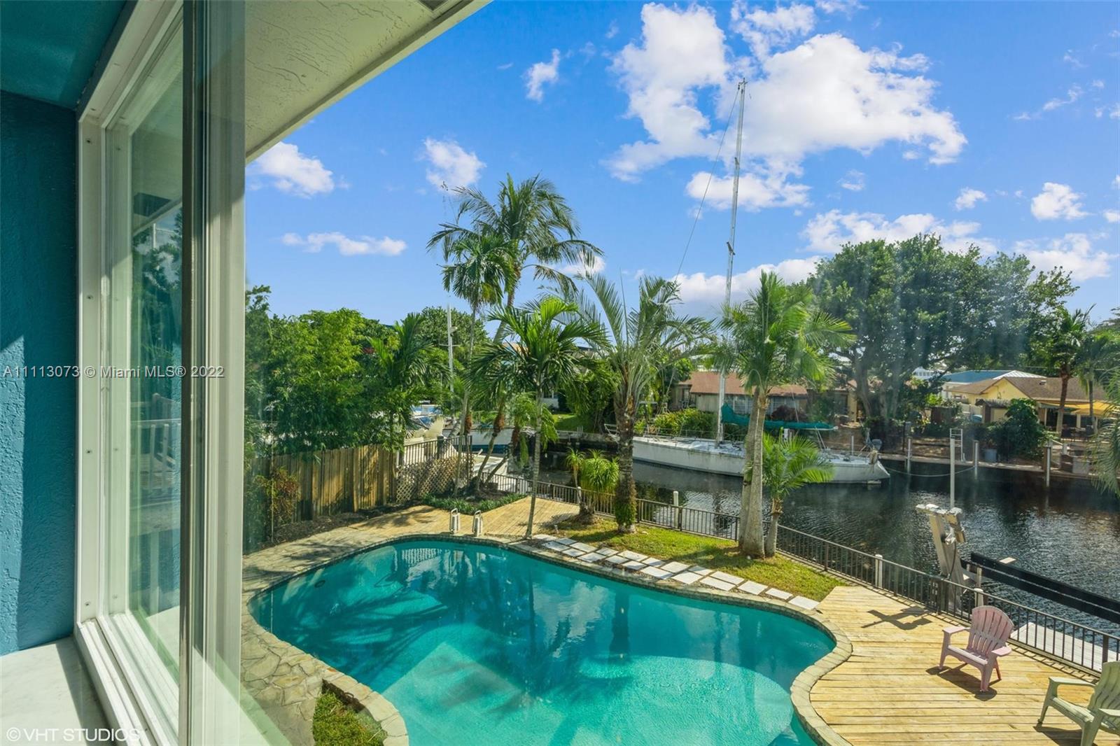 This amazing point lot home has over 120 feet of non-fixed bridge waterfront. This waterfront dream is fully updated with high-end finishes and upgrades. This property features 4 bedrooms, a new kitchen with luxury stainless steel appliances, 3 fully remodeled bathrooms, and new HVAC. On the exterior, new landscaping in the front and rear, privacy fence creating a serene front courtyard, a large outdoor deck, and pool, makes this a perfect place for outdoor entertaining. Can rent dock space for additional income. This is Ft Lauderdale living at its best. Property being sold "as is".