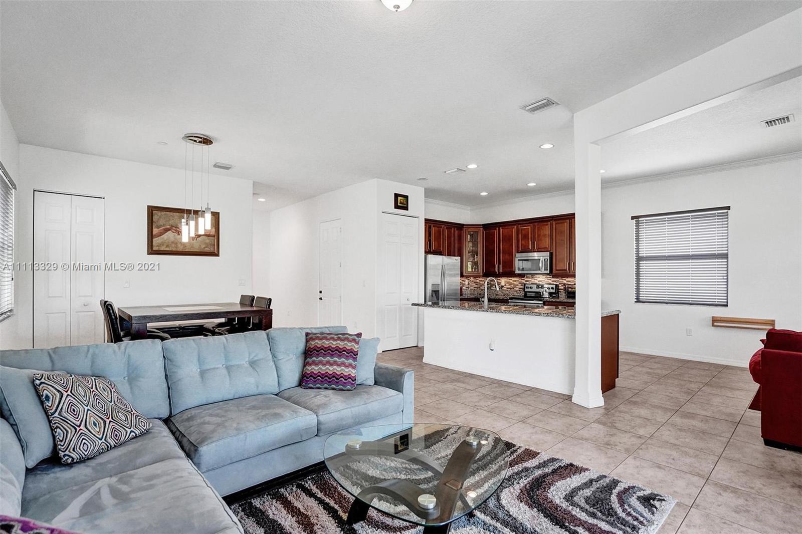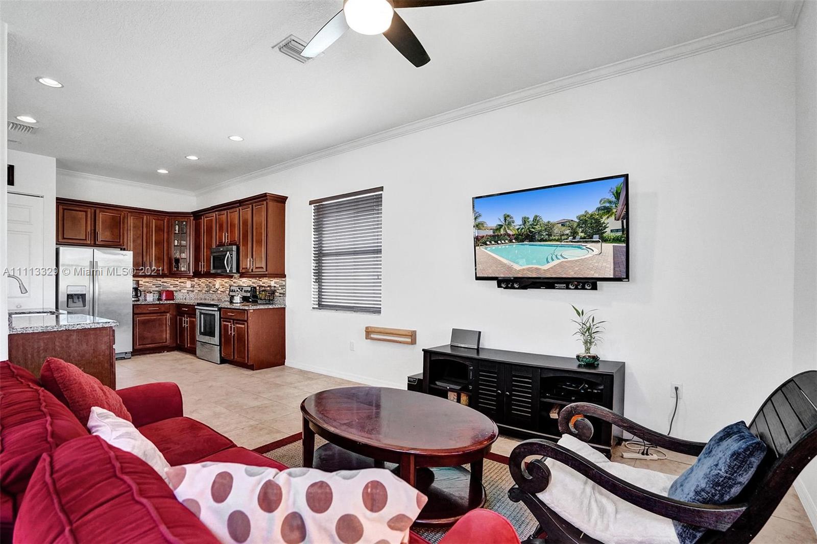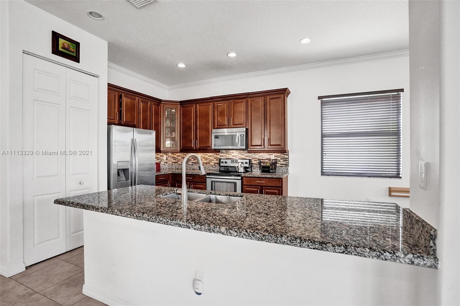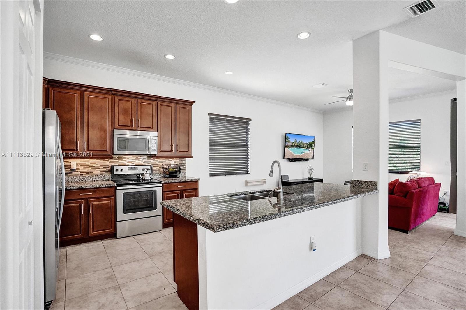 Gorgeous newer 2 story open concept home w/ a one car garage, paved driveway. Featuring 3 bedrooms & 2 bathrooms on the 2nd floor w/wood flooring, & laundry area, 1/2 guest bathroom on 1st floor, Upgraded Gourmet 42" wooden kitchen cabinets, stainless steel appliances, granite counter tops & gorgeous back splash for great & stylish look. Ceiling fans in 3 areas. Neutral tile throughout 1st floor. Heading to the backyard, a perfect place to host for gatherings, BBQ's, parties, playing or entertaining & if you just want to disconnect sit under the pergola, you will feel totally serene looking at the spectacular water view. Community features pool, cabana house, children play area, gated community, 24 hr security patrol... This home has lots of extra features. Come call this your home!!