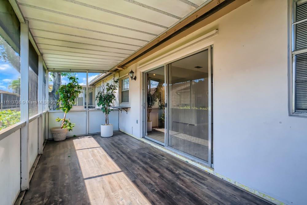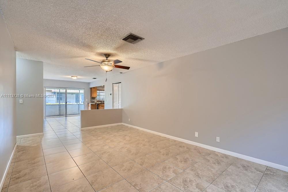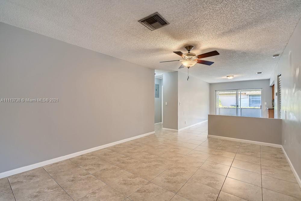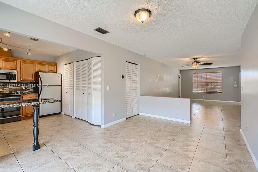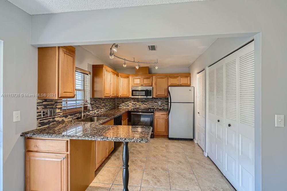 Do not miss this opportunity to own this 3 bedroom, 2 bathroom townhome in the heart of Davie near several shops, eateries, and easy access to I-595! A spacious living room with sleek floors and ample light welcomes you as you enter the home. Continue to the kitchen that offers durable countertops, wood cabinetry, a beautiful backsplash, and a breakfast bar that opens up to the dining area. The primary bathroom offers generous closet space and an en suite bathroom with a tiled shower. Find yourself retreating to the screened-in patio in the backyard featuring a pass-through window into the kitchen that you can eat and drink at while enjoying the outside breeze!