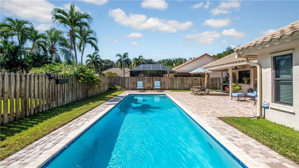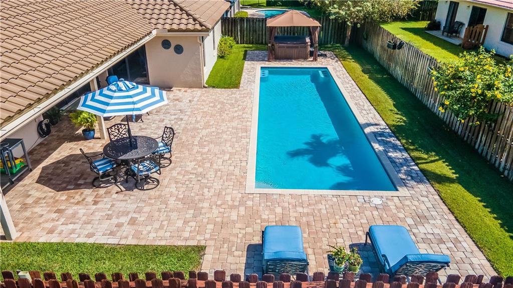 Stunning, impeccably maintained light & bright home. Prestigious Fox Run at Jacaranda, Plantation. Magnificent curb appeal, lush landscaping w/lighting. Foyer entry & enjoy direct views of private pool & separate hot tub, surrounded by paver pool deck & fully fenced yard. Remodeled Kitchen w/light custom cabinets, top of line SS/Appliances, granite countertops, pendant lighting, pass thru to exterior entertainment area. Brazilian Cherrywood flooring, No popcorn ceilings. Impact windows & doors - 2019, Roof & gutters - 2017, pool diamond bright - 2019, exterior painted - 2018, home is equipped with 120V back feed for generator w/code approved, & so much more! Low HOA fees, Fox Run is famous for it's beautiful tree lined streets. Centrally located, minutes from major highways, parks & malls.