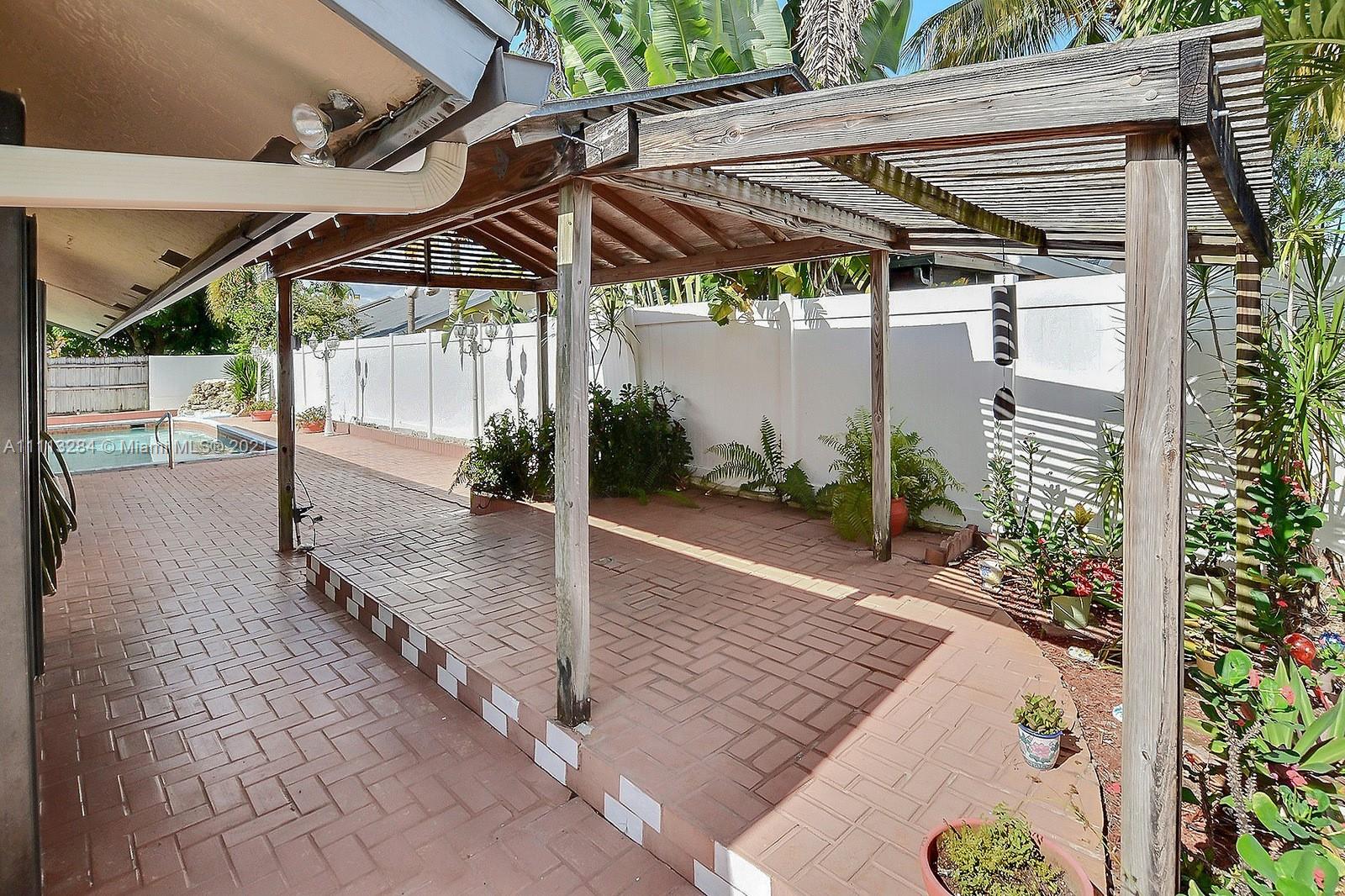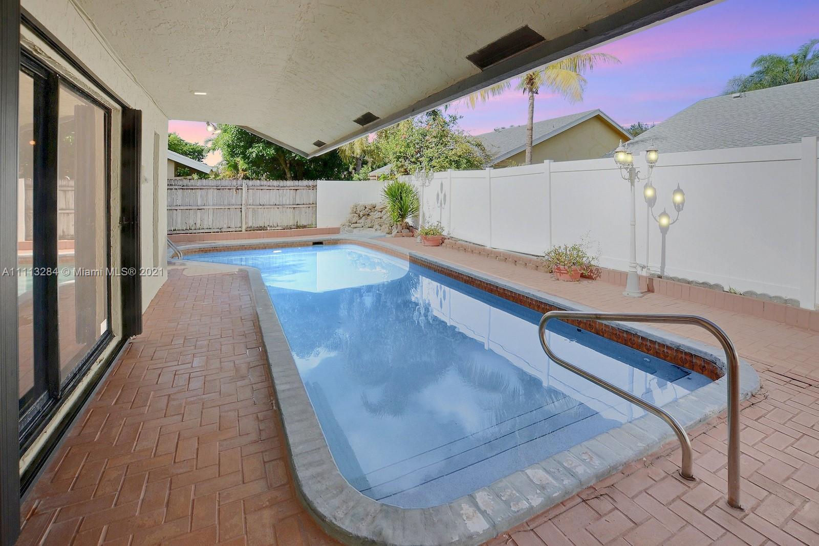 FANTASTIC OPPORTUNITY TO LIVE IN WOODBRIDGE, PEMBROKE PINES. SPACIOUS POOL HOME FEATURES 4 BEDS, 2.5 BATHS, OPEN FLOOR PLAN WITH FAMILY, LIVING & DINING ROOMS. SOARING CEILINGS WITH BEAUTIFUL WOOD BEAMS & ROMANTIC WOOD BURNING FIREPLACE. LARGE PRIMARY BEDROOM WITH ENSUITE BATH. GREAT HOME FOR ENTERTAINING FAMILY AND FRIENDS WITH BUILT-IN BAR, GAZEBO AND REFRESHING POOL ON FENCED BACKYARD. LUSHLY LANDSCAPED BACKYARD WITH LOTS OF SHADE AND TWO MANGO TREES. CIRCULAR DRIVEWAY AND NO HOA! FANTASTIC CENTRAL LOCATION CLOSE TO SHOPS, RESTAURANTS AND EASY ACCESS TO HIGHWAYS.