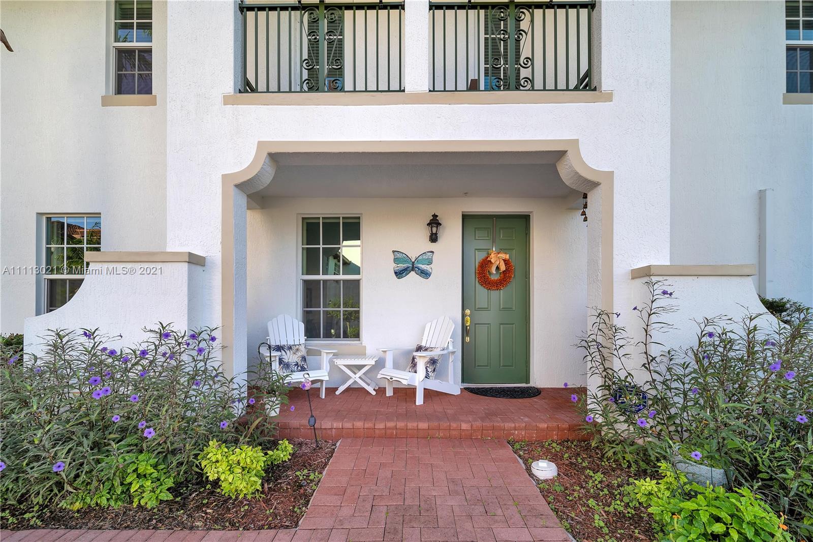 Rare Find Model Unit, the only one of its kind on the market! Beautiful 3 bed / 2.5 bath furnished corner two-story townhome. Featuring oversized master bedroom, renovated kitchen, tile floors with carpeted master bedroom. Rest of second floor and stairs are wood floors. Large walk-in closets, private den, extra balcony feature from master bedroom with view to open preserve, small paved patio, large two-car garage with driveway premium allowing room for two extra cars. All windows are impact resistance with plantation shutter blinds. Your perfect home awaits. Amazing family-friendly lakefront community features pool, gym, clubhouse, kids playground, walking trail Low HOA fee includes basic cable & internet Home is sold fully-furnished and ready to move in