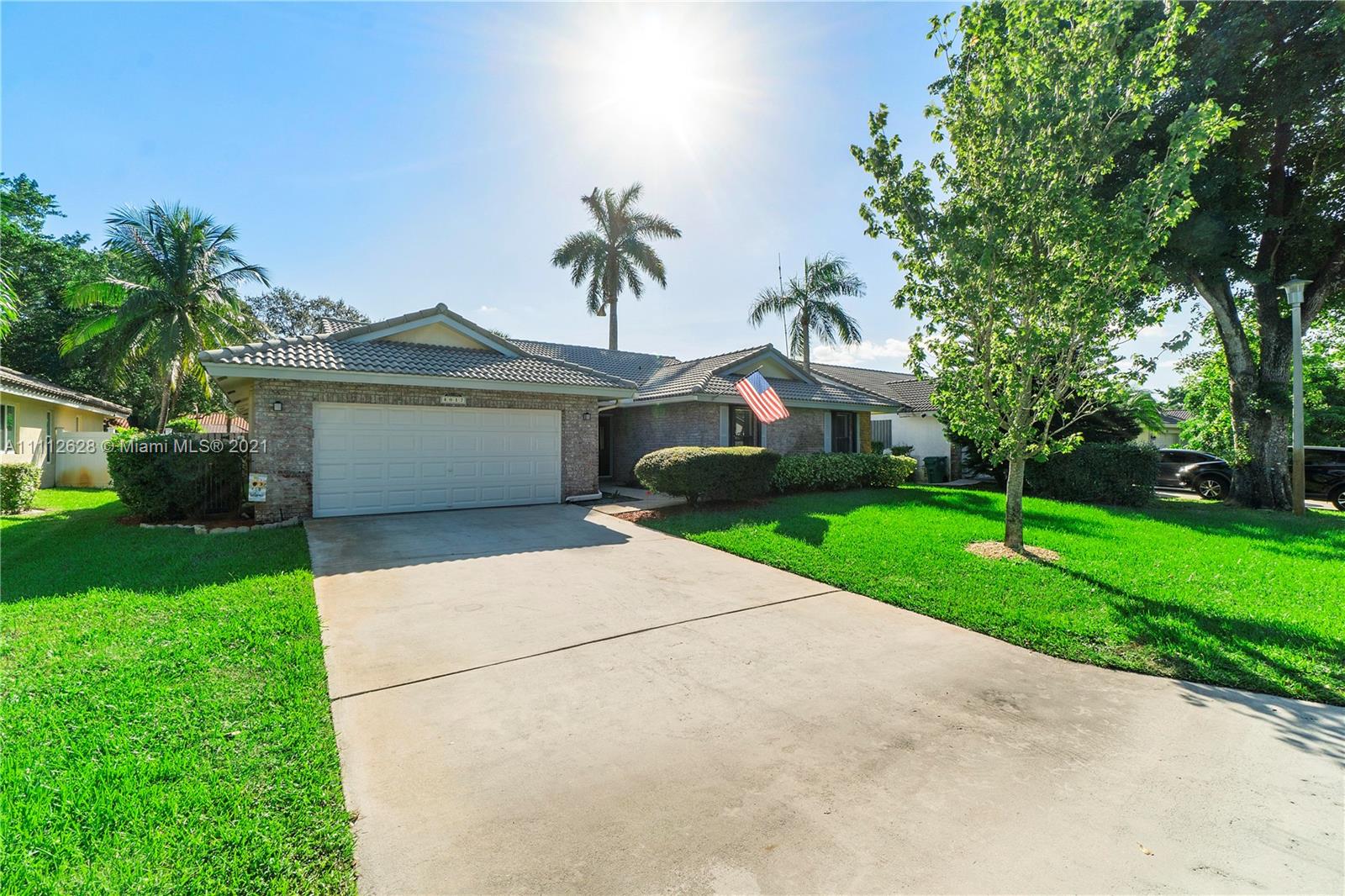 Come and see this light and bright, immaculate 4 Bedroom 2.5 Bath pool home with open floor plan and soaring ceilings for contemporary Florida living! You will love looking outside from your triple sliding glass doors to the serene and peaceful pool views from throughout your home. Enjoy the paver deck and crystal pool every day! Located in desirable Coral Springs with easy access to parks, schools, restaurants and highways! Features include: A/C 2018, impact garage door 2021, roof 2003, complete hurricane accordion shutters, fenced yard, laminate wood floors in 3 bedrooms, master bathroom has double sinks and shower, concrete driveway, double door entry, inside laundry room with extra cabinets, pantry in kitchen, fireplace with coral wall in family room, alarm and so much more!