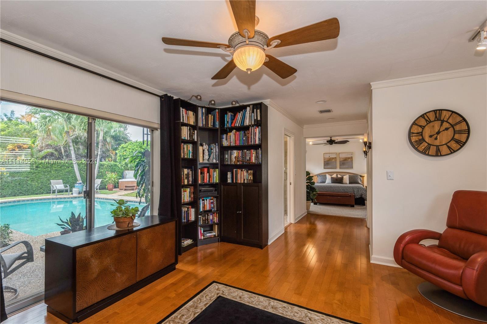Striking Hollywood Hills 3 Bed 2 Bath lushly landscaped pool home plus 2 car garage. Chef’s kitchen with stainless steel appliances, granite countertops & built-in granite table adjoins the family room. Enjoy expansive Living room, separate Dining room, and Large Primary Bedroom Suite too. Tile, wood & carpeted flooring throughout. Hurricane impact skylights keep the home bright. Separate AC systems for living and bedroom areas. Portable generator included with home Hookup. Convenient to everything