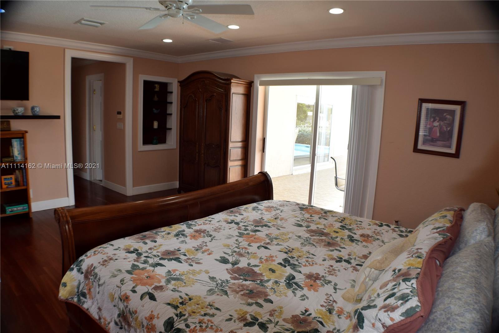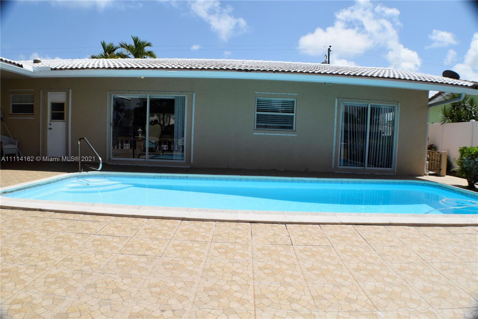 Executive ocean access waterfront home with 80'+ dock and fabulous 1,500 Sq. Ft concrete patio, pool with brand new oversize heater, separate BBQ area with granite counters, slip resistant tile, outdoor lighting and no rust, no wood long lasting dock with electric and water. Interior is just as nice. Upgraded kitchen, maple cabinets, granite counters, S/S appliances, separate laundry room, travertine marble floors in living/dining/kitchen; mahogany wood floors in main bedroom, bay window in living room, marble and wood beam ceiling in main bath, upgraded vanities, dual shower with seat, huge walk in closet. New 5 ton A/C with all new ducting, large two car garage. Impeccably maintained with full inspection report available with offer. Move in ready. Celebrate the holidays in your new home!