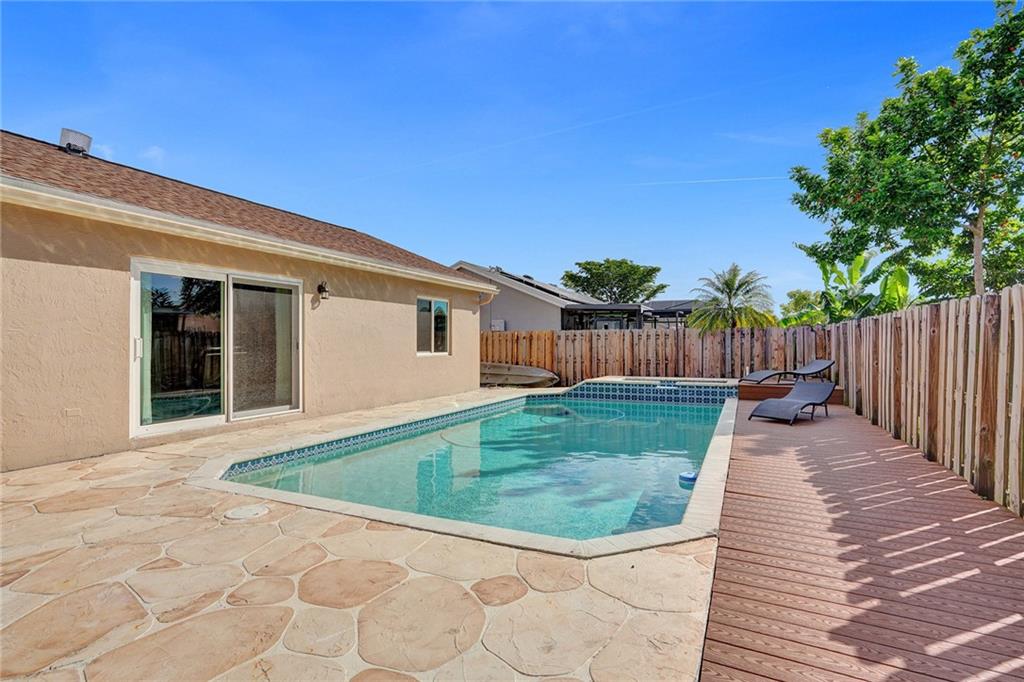 Beautiful 4 bed 2 bath pool home in Banyan Estates. Waterproof wood vinyl flooring throughout the home. Impact windows and doors throughout. Open eat-in kitchen with marble countertops, bar top, and newer appliances. Large Master Suite W/Walk In Closet & Bath. 3 Additional Bedrooms with plenty of storage space. Large patio and pool with hot tub perfect for entertaining. Oversized driveway for extra parking space.
