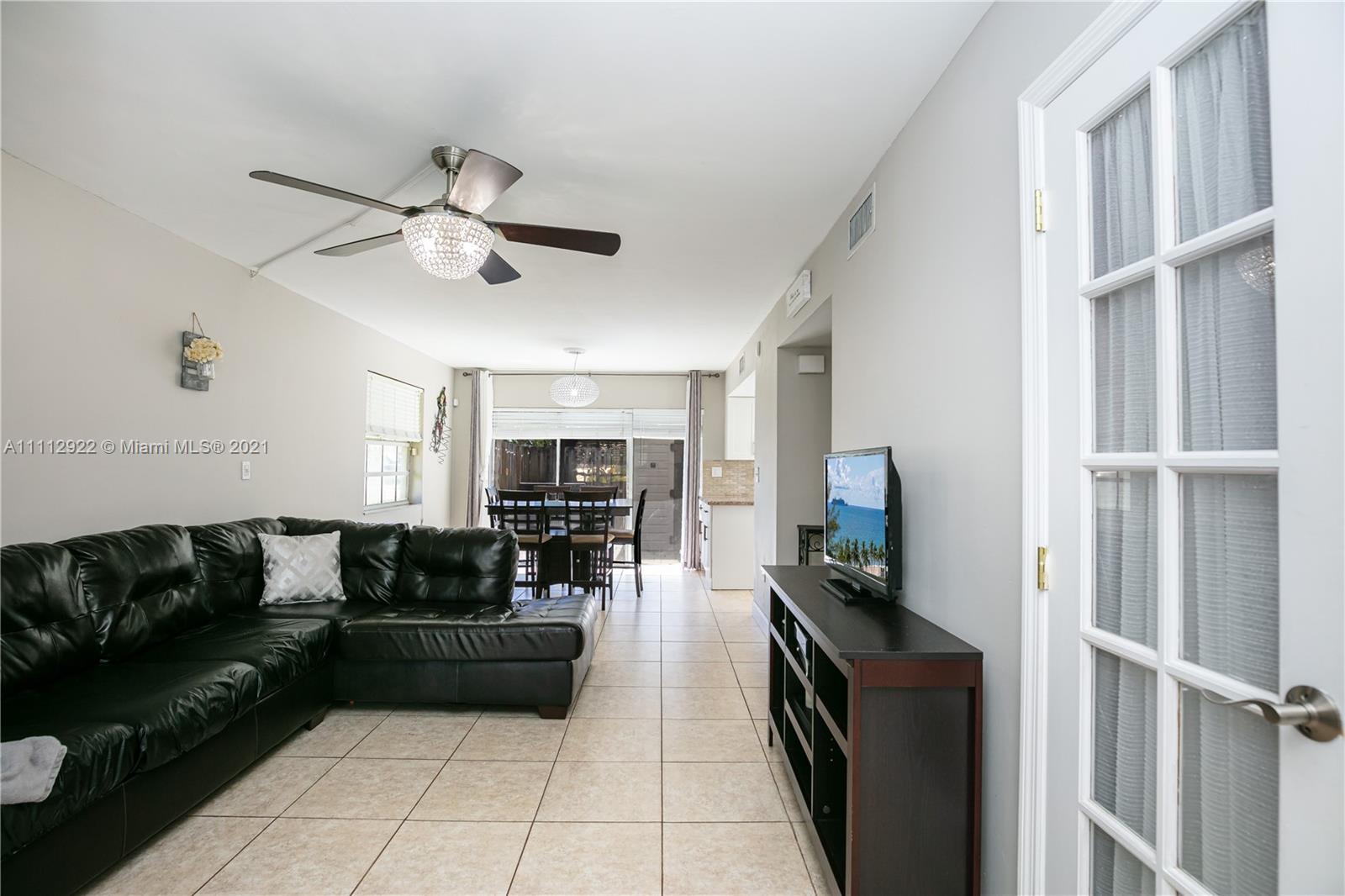 Beautifully Updated 3 bedroom 2.5 bathroom corner unit townhome in the charming neighborhood of Flamingo gardens filled with mature tree-lined streets, walking paths and pool. The interior features gorgeous tile and wood laminate floors throughout, beautiful kitchen with white shaker cabinetry, tiled backsplash and granite countertops, 2 master bedrooms with ensuite bathrooms and two closets, master with updated vanity and quartz countertops, includes laundry, hurricane shutters and storage shed. Bbq in your private fenced-in yard with patio doors opening to the dining area. Walking distance to shopping, playgrounds, playfields and sports complexes.Easy access to I595 and I75. Excellent Cooper City School zone. Low HOA dues. Pet friendly. 2 parking spots in front of unit plus guest parking