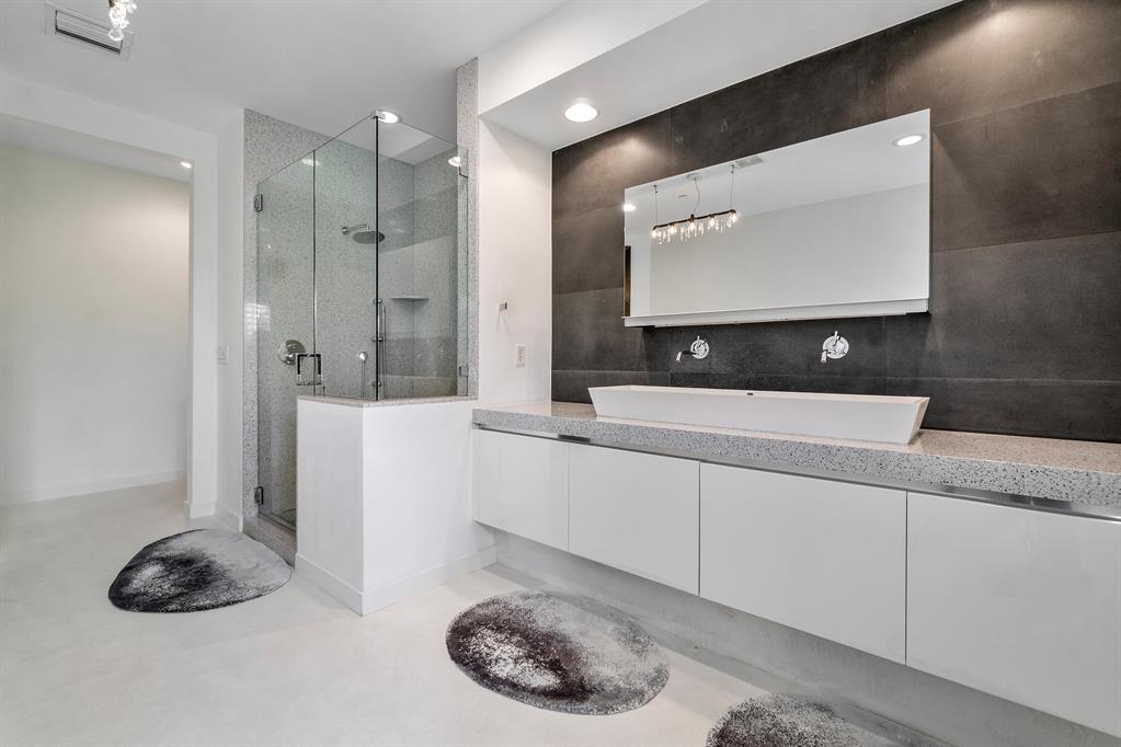 Open concept and completely renovated Bella Vita 3 bedroom, 3 1/2 bath townhome nestled in the quiet southeast corner of Trieste at Boca. Trieste is a 109-townhome community in east Boca with 24/7 gated and guarded security and close proximity to shops, restaurants, the beach, and great schools.The three-story townhome features private elevator access to the en suite master and mini master on the top floor. Both suites have large California built out closets, quartz counter tops, and white lacquer cabinets. The master bath has dual sinks and a freestanding soaking tub.This elegant home has been updated with porcelain floors, custom built-in bar with a 15 bottle Whynter wine cooler, and a concrete feature wall with a gas fireplace. There is ample storage in the chef's kitchen....