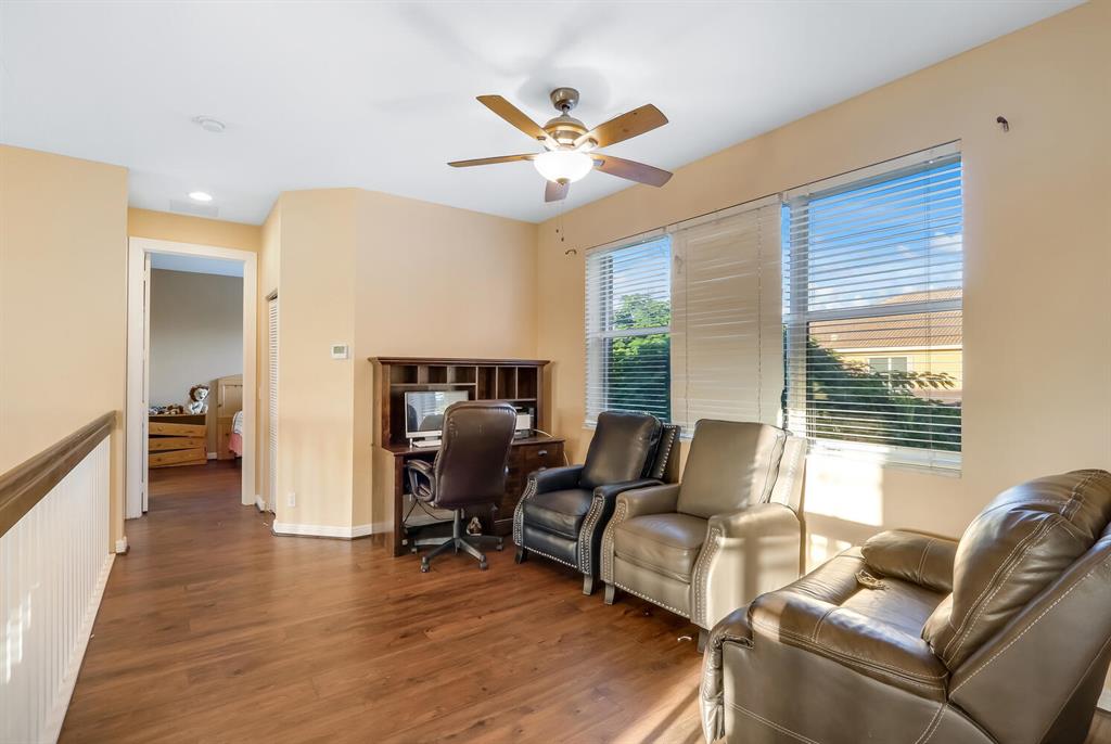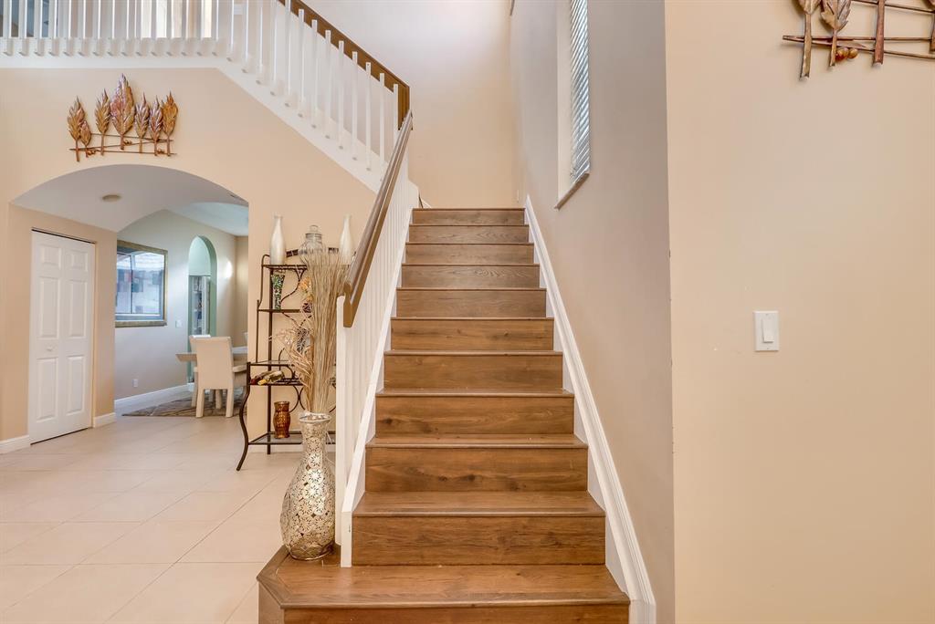 This is a gorgeous 5/3 1/2 bath has been kept in pristine condition. The spacious Master Bedroom on the main has a Jacuzzi Tub and his/hers separate closets & vanities. Laminated flooring , the eat-in Kitchen overlooks the family room, granite counter tops. Accordion hurricane shutters. Community has tennis courts, oversized heated swimming pool, kids playground, and a gym.