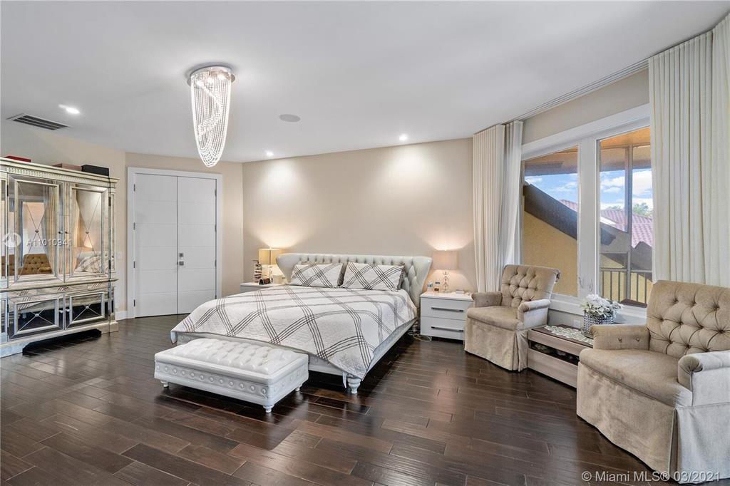 Spectacular 7 brs home on oversized corner lot, expansive chefs kitchen with two islands. Wolf/Subzero appliances. Three car attached garage. Theater room with recliner chairs. Master bedroom downstairs with large custom closets. Impact windows throughout. Outside features include heated pool, custom basketball court, built in grills with wet bar. Water purifying system. The lush landscaping provides complete privacy.