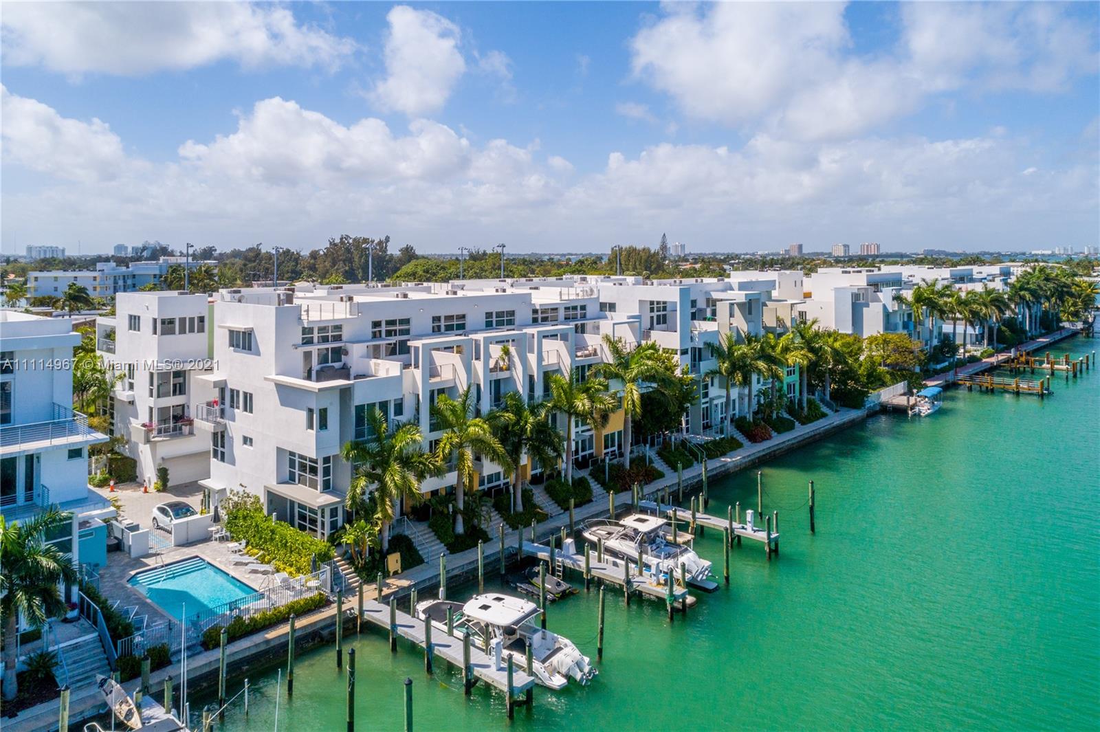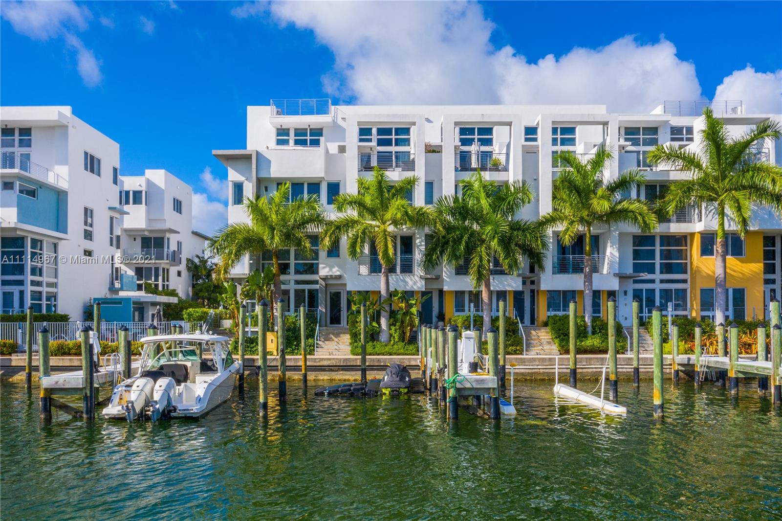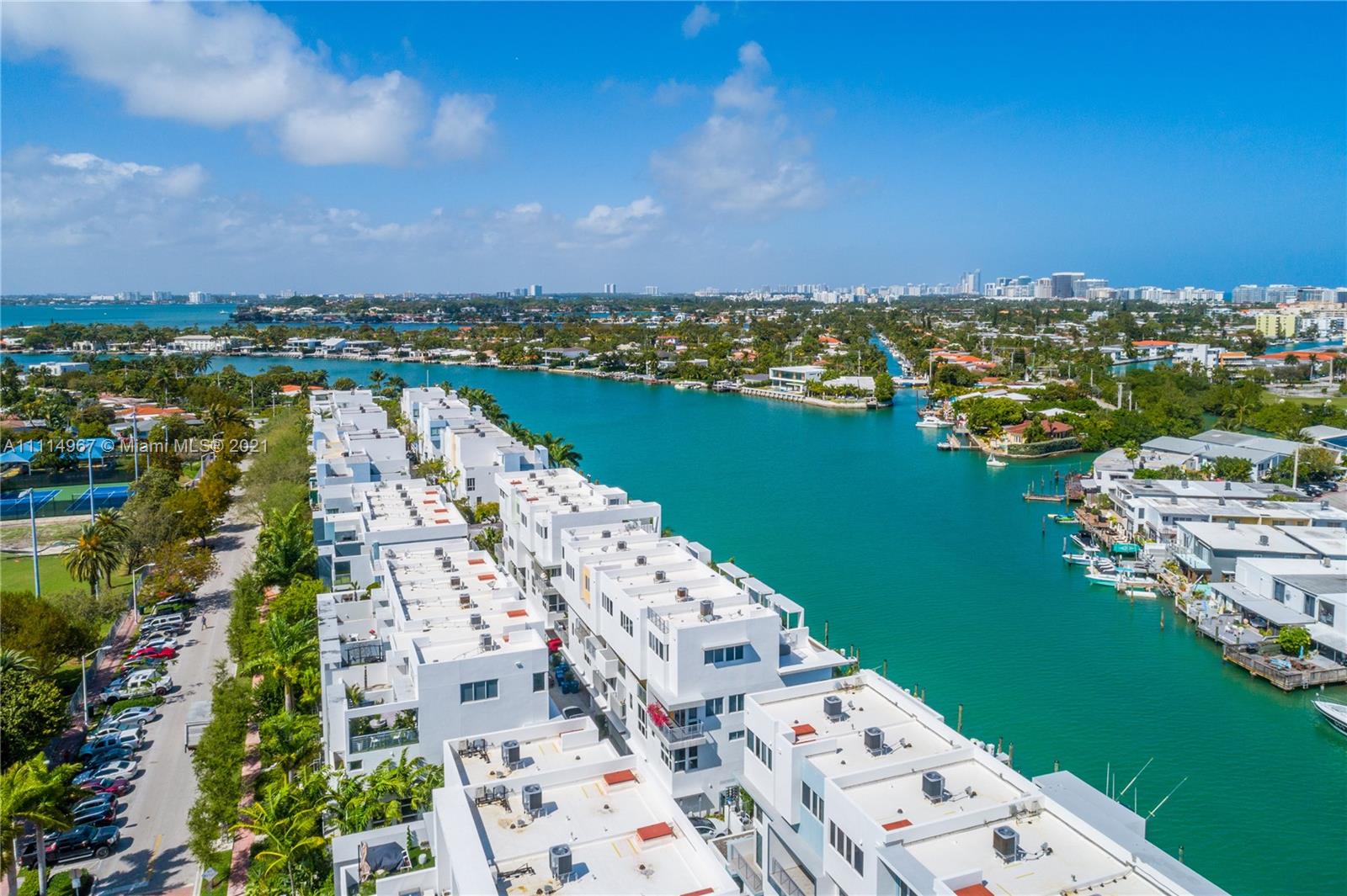 Live the Miami dream in this beautiful 4 story waterfront townhouse. Located in Iris On The Bay featuring 4 bedrooms with private balconies, 4.5 bathrooms, private elevator, modern European kitchen, laundry room, rooftop terrace with outdoor kitchen, and spacious 2 car garage. Water access is only within a few steps from your door to the dock for all your boating and water sports needs. The bedrooms are well laid out and split with the master suite on the 4th floor. The private elevator provides amazing convenience for all floors within the home. The property is located a few blocks from beach, across from normandy golf course, tennis courts, children's playground, soccer field, restaurants, and shopping.