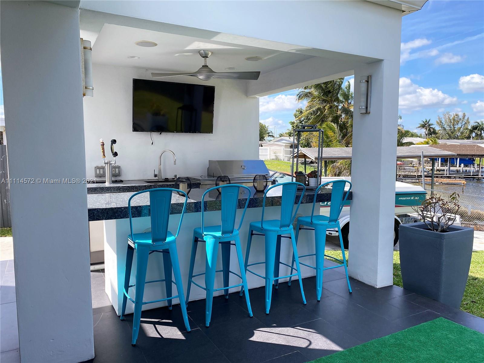 Beautiful house in the desired Palm Springs North. Tastefully remodeled, everything is top of the line. Impact windows and doors, two high efficiency central A/C units. All bedrooms have a bathroom. Heated infinity pool with therapy jets and a lighted waterfall overlooking the lake. An outdoor bar and gas BBQ for entertaining. A wood dock with a boat ramp for your boat or Jet ski's which are allowed in your lake. This house is completely set up with all the bells and whistles your looking for. Your own tropical paradise.