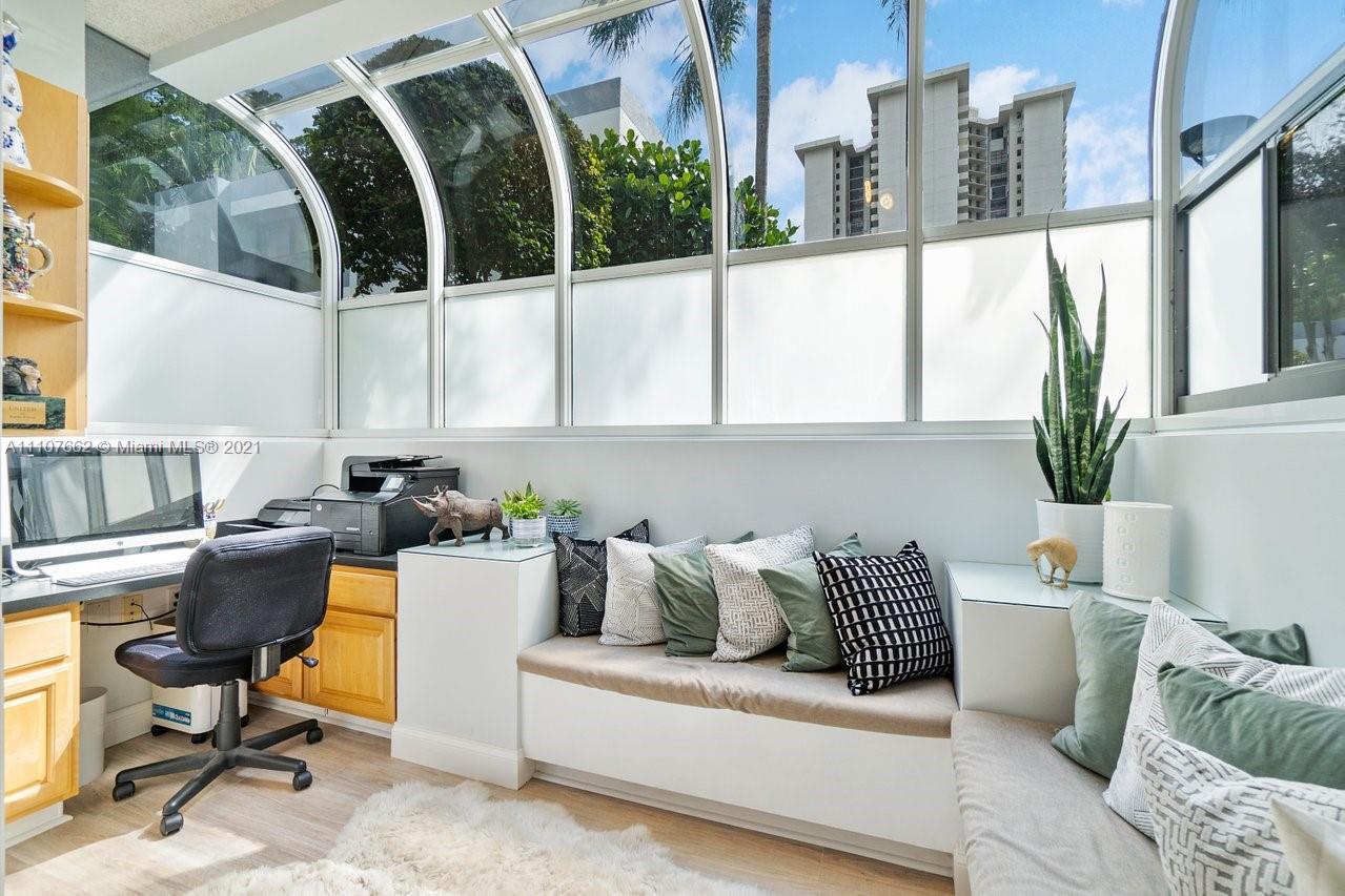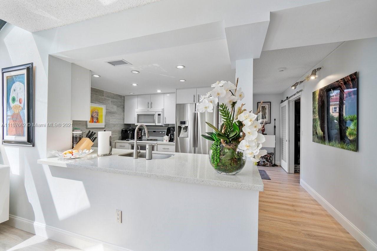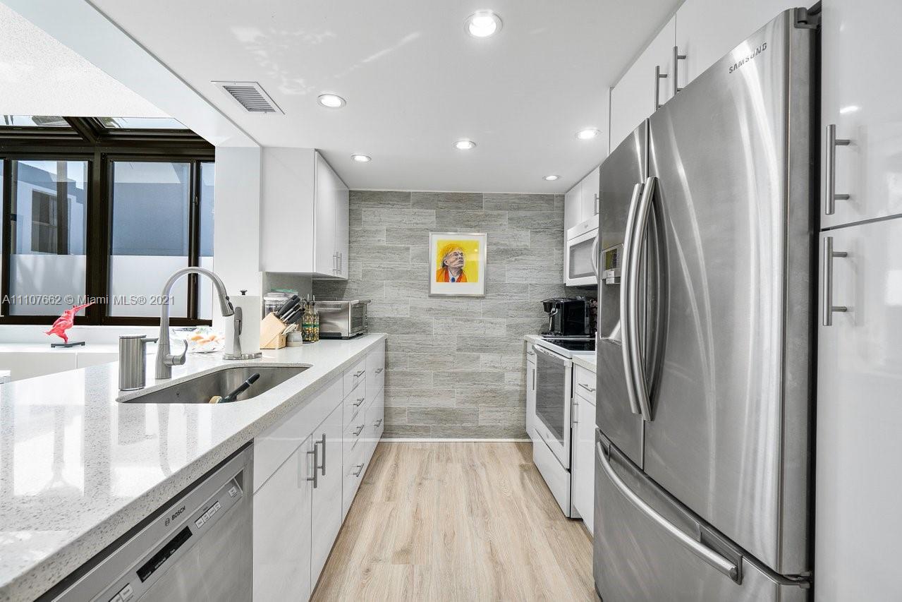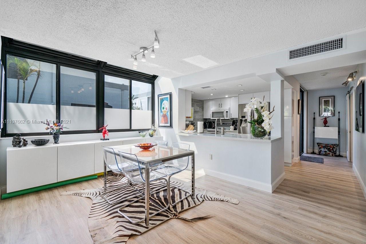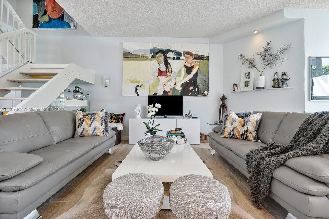 Admirals Port Townhome w/Lots & lots of Natural Light! High ceilings, lots of windows Spacious 3 br 2.5 ba or 2/2 with Den townhome offers a renovated kitchen with white custom cabinetry, Quartz countertops, and stainless-steel appliances All new Whitewashed wood laminate flooring throughout the first floor & wood burning fireplace. 2 En-suite bedrooms upstairs MB closet expanded for huge closet space Washer dryer in MB 1st floor bedroom has barn doors now used as a media room (closet easily re-installed) 2 assigned parking, Heated pool no rental restrictions 2 dogs allowed. Low HOA. Prime Aventura location walking distance to A Rated schools, Houses of Worship, Fresh Market, Publix and world-class shopping and dining at Aventura Mall mins to beaches of Sunny Isles. XL community pool.