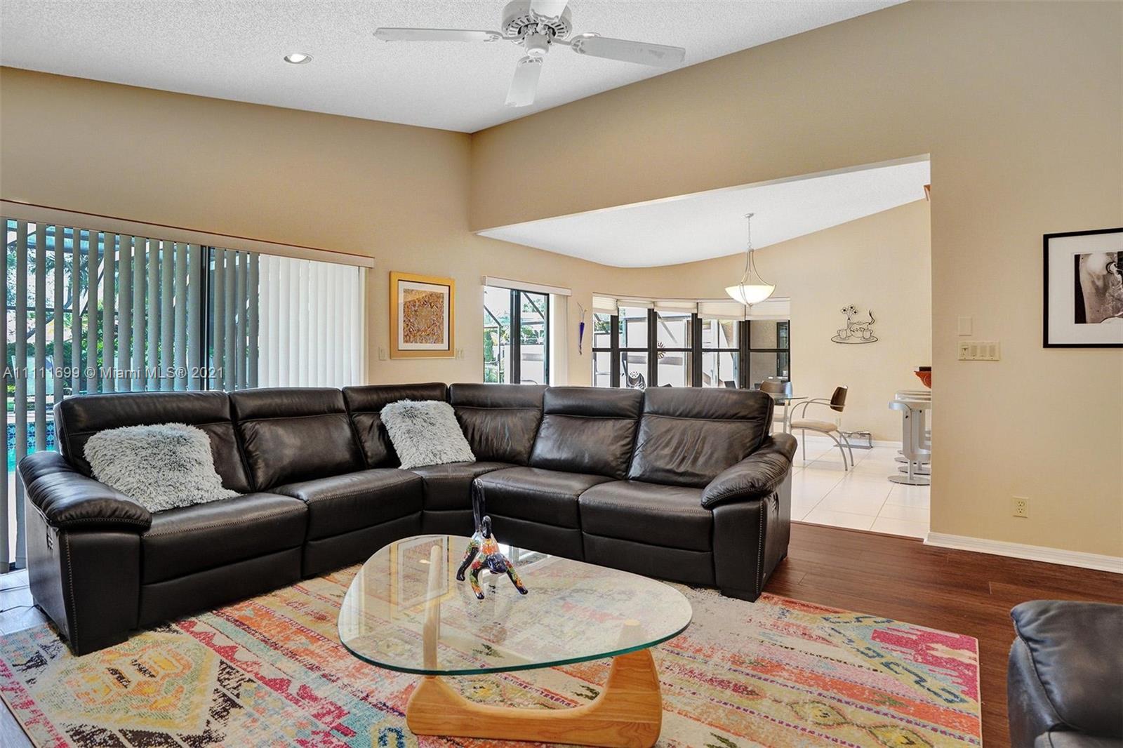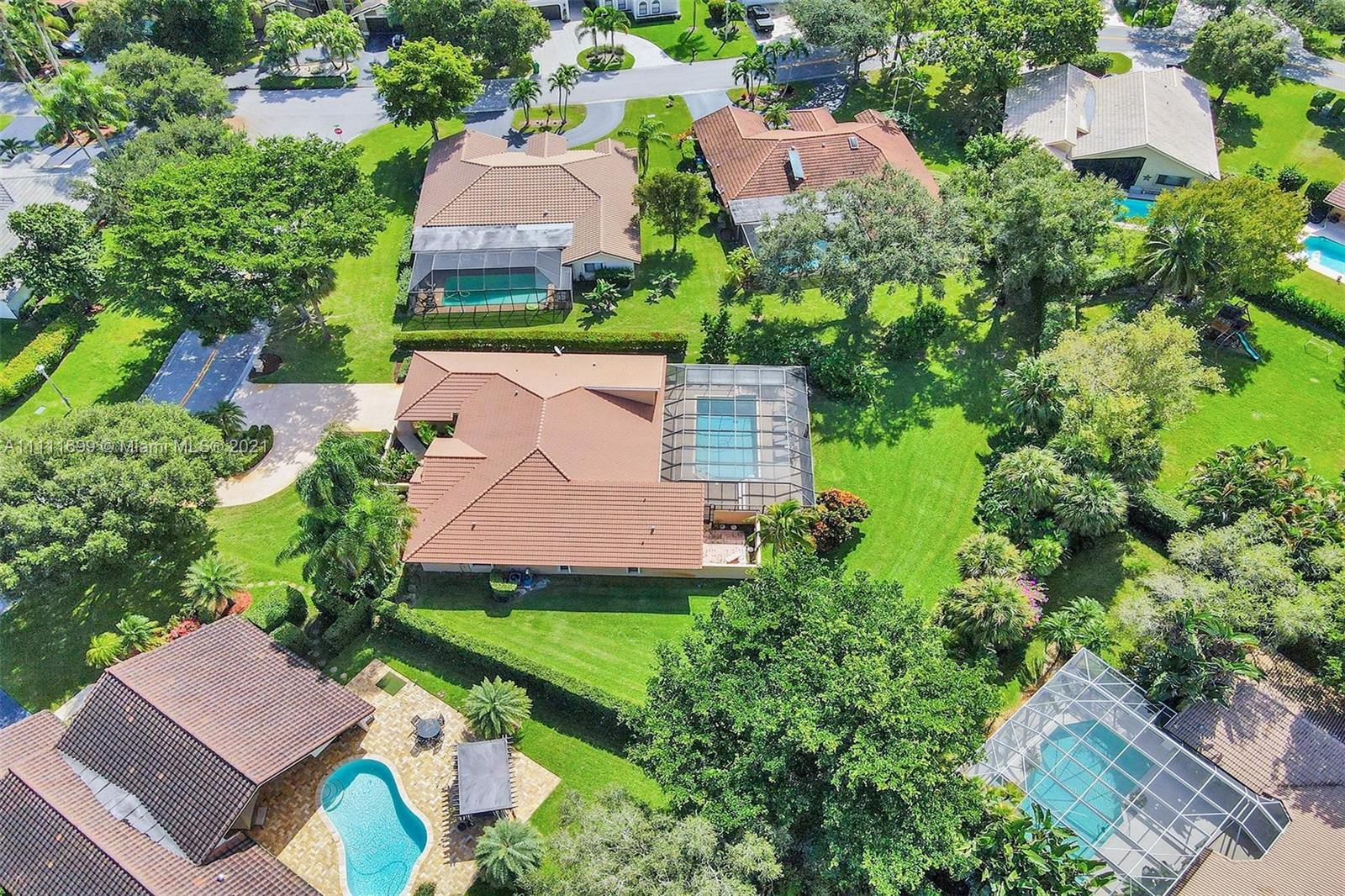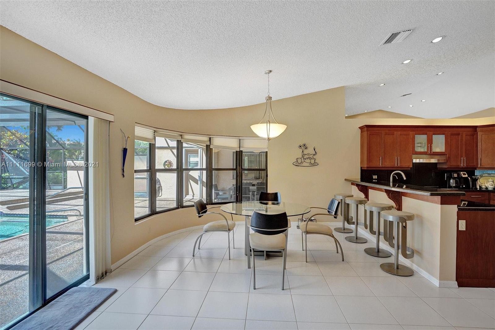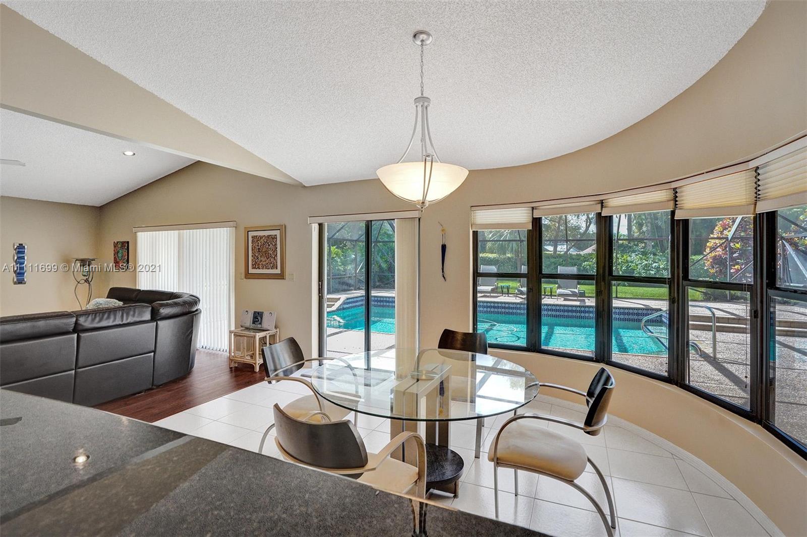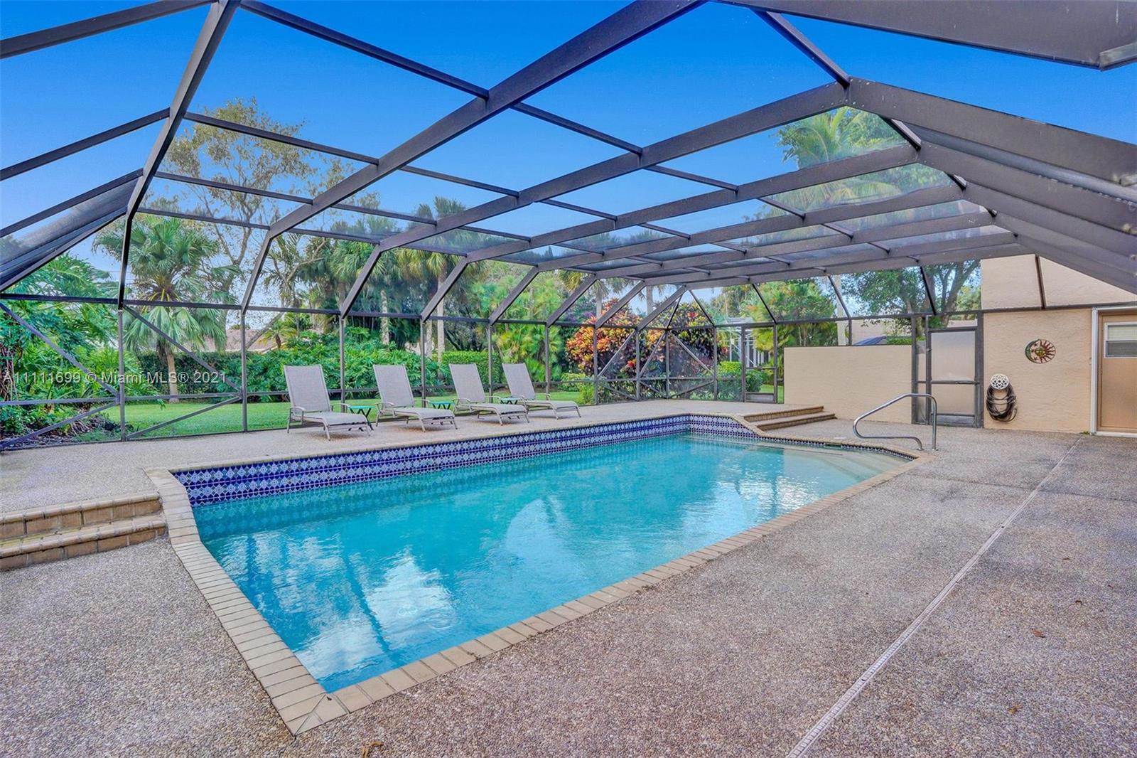 Welcome home to this gem situated on an oversized lot in the desirable Pine Ridge! Featuring an expansive circular stamped concrete driveway, lush yard & landscaping, modern updated kitchen, high-end $12k appliance package, eat-in kitchen & Bar height seating, updated master bath with frameless glass shower & private oasis patio off the shower, new laminate flooring, recessed lighting throughout, home water purification system, Jack & Jill bath, central vacuum & much more! Have peace of mind during hurricane season with full accordion shutters & the convenience of a shutter-enclosed patio for storage during a storm. Enjoy hosting poolside in your spacious backyard with a beautiful large swimming pool, screen enclosure, wet bar, elevated pool deck & brand new pool pump! Do not miss this!