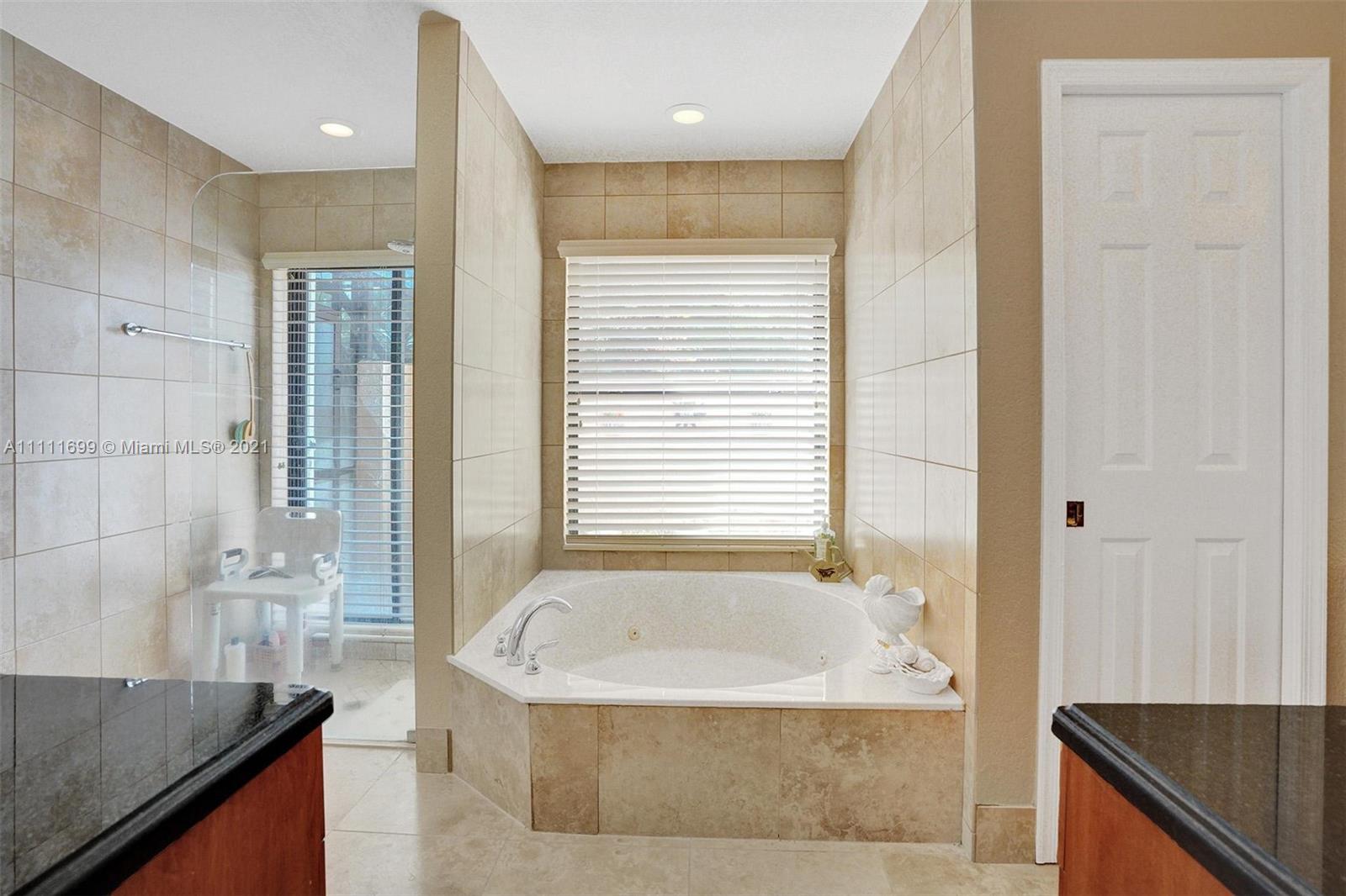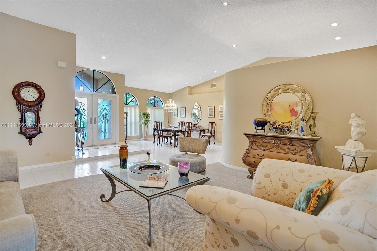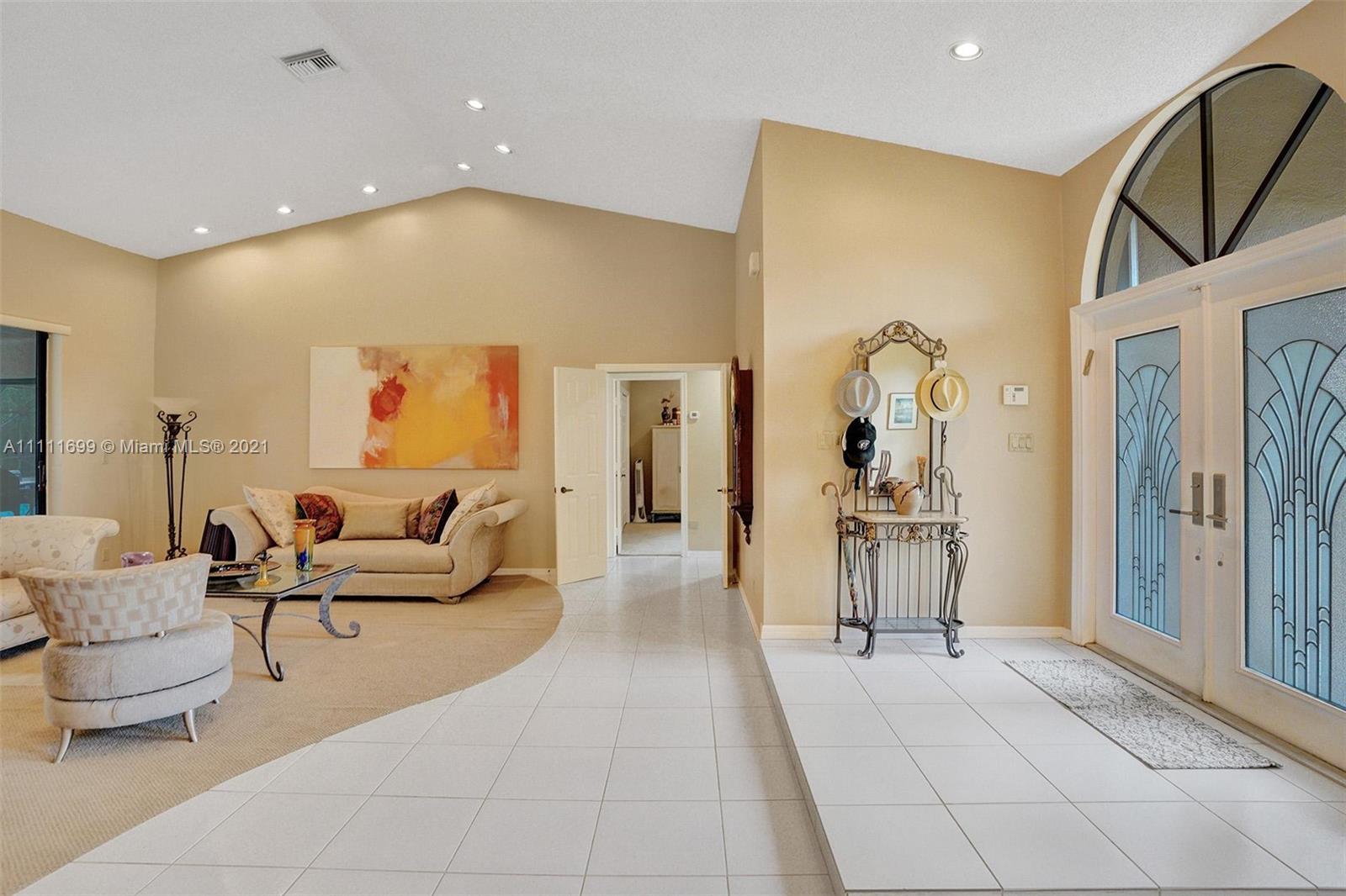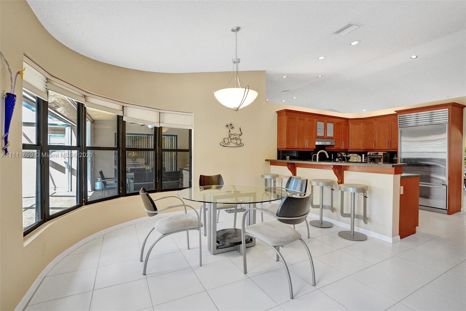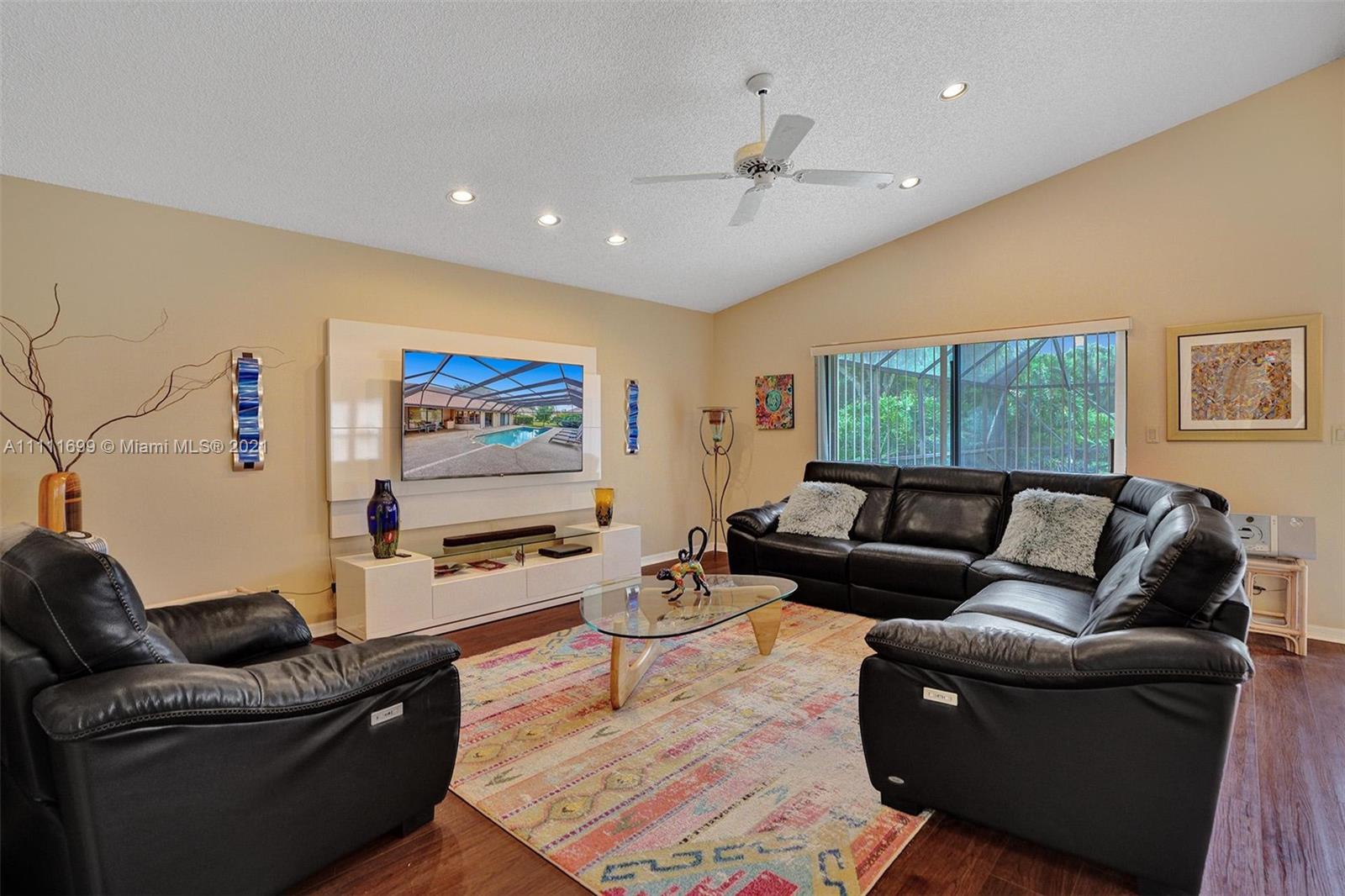 Welcome home to this gem situated on an oversized lot in the desirable Pine Ridge! Featuring an expansive circular stamped concrete driveway, lush yard & landscaping, modern updated kitchen, high-end $12k appliance package, eat-in kitchen & Bar height seating, updated master bath with frameless glass shower & private oasis patio off the shower, new laminate flooring, recessed lighting throughout, home water purification system, Jack & Jill bath, central vacuum & much more! Have peace of mind during hurricane season with full accordion shutters & the convenience of a shutter-enclosed patio for storage during a storm. Enjoy hosting poolside in your spacious backyard with a beautiful large swimming pool, screen enclosure, wet bar, elevated pool deck & brand new pool pump! Do not miss this!