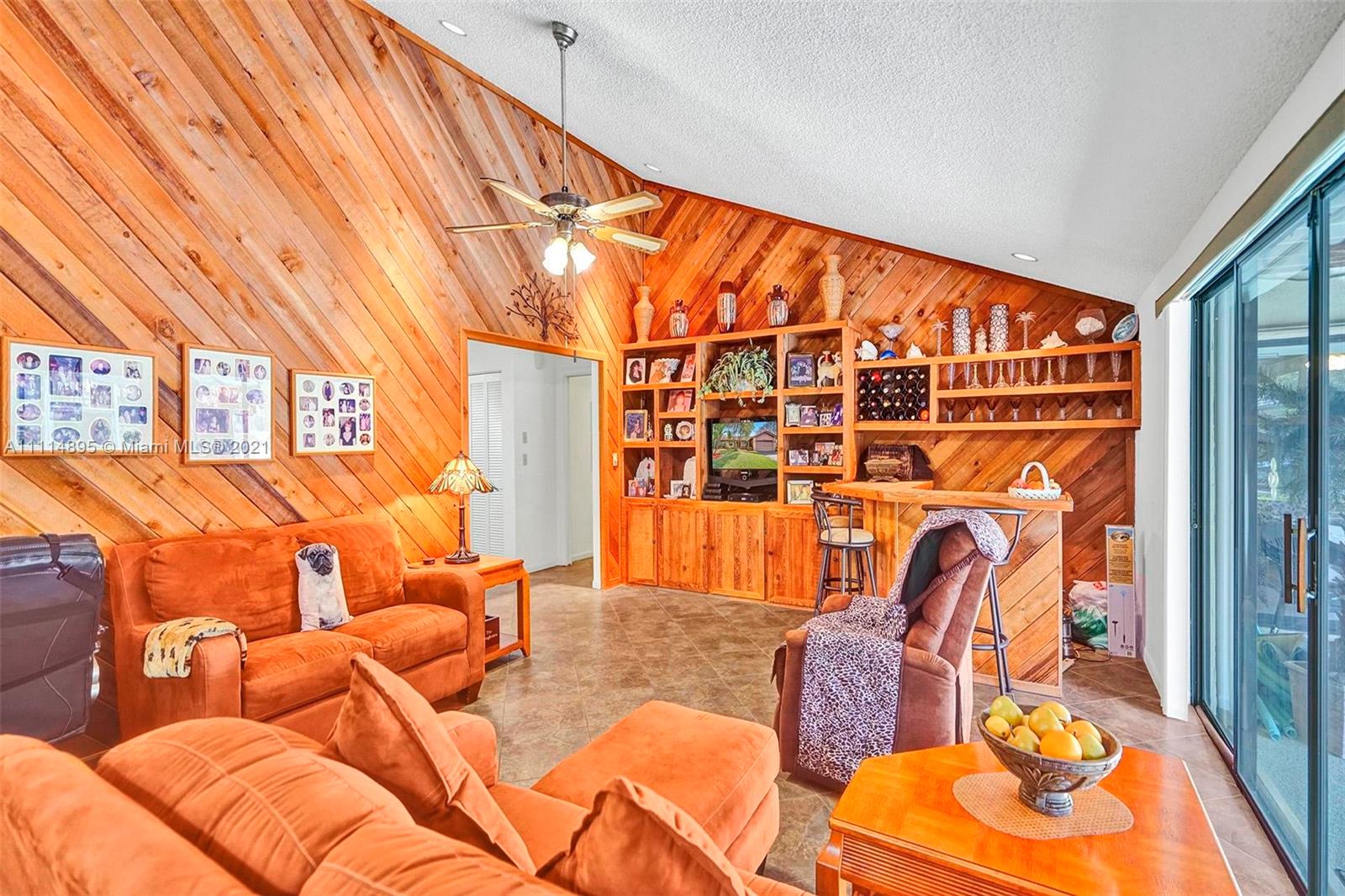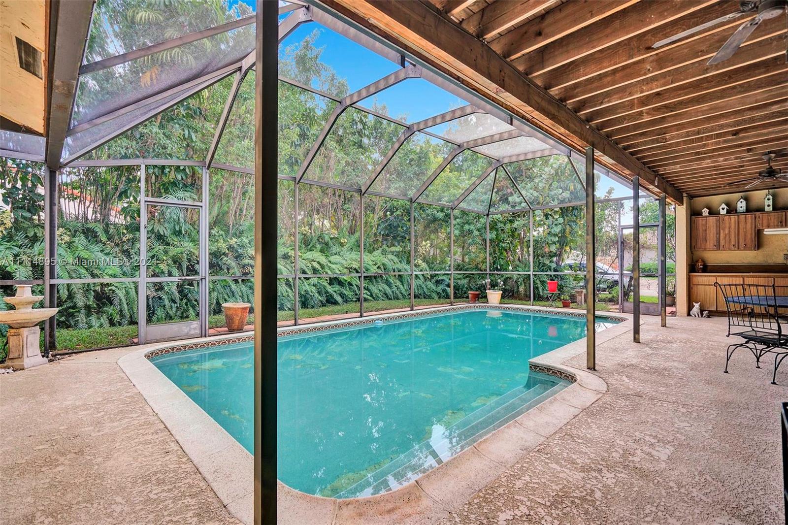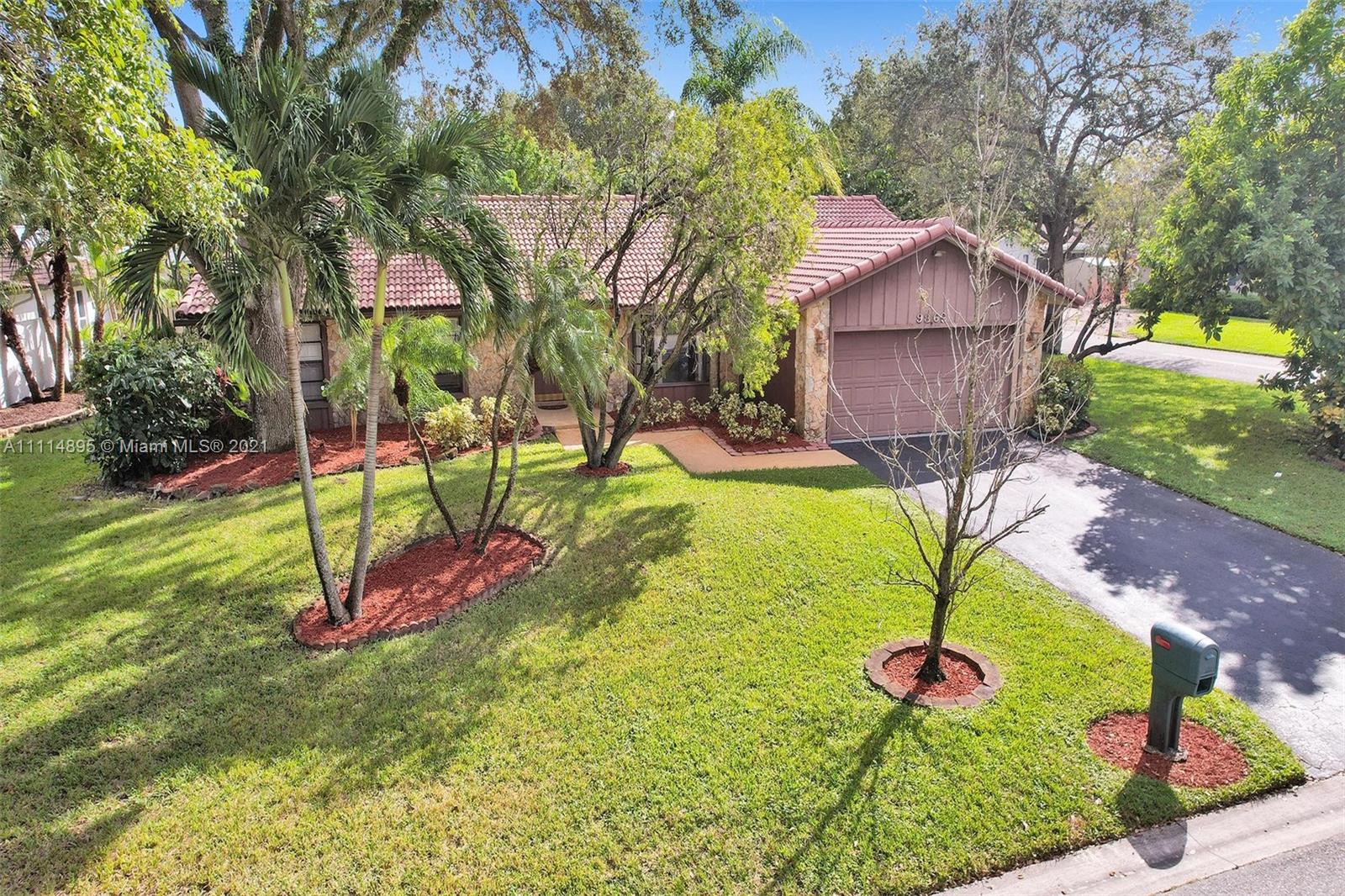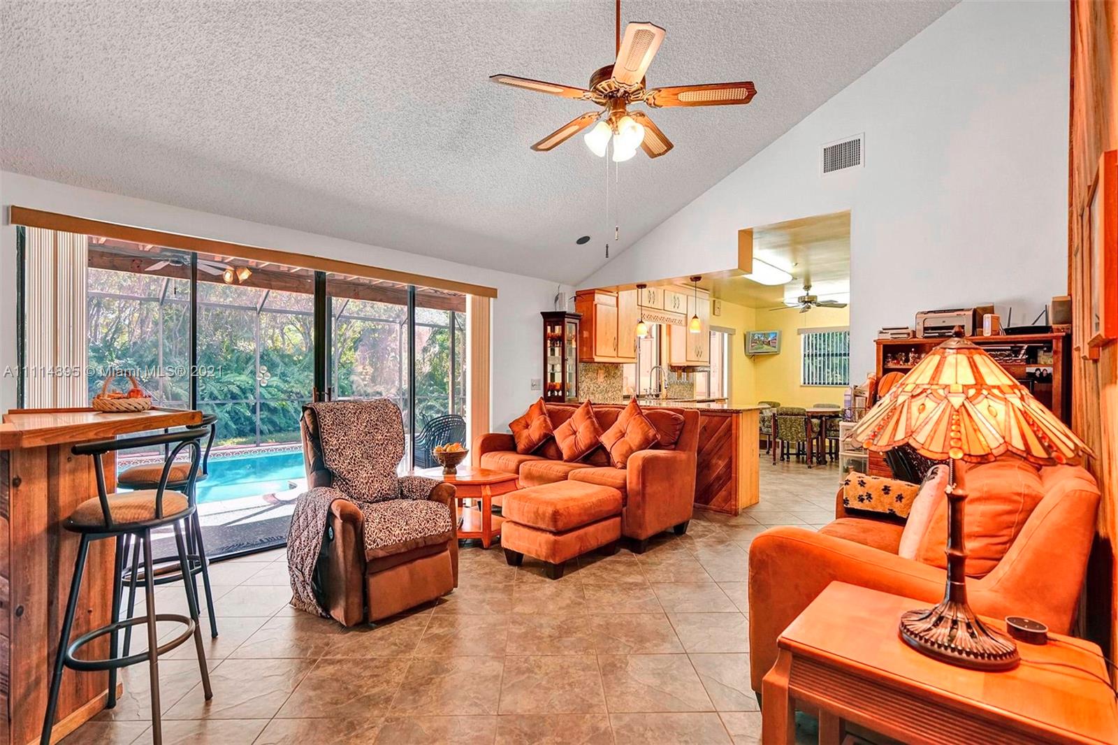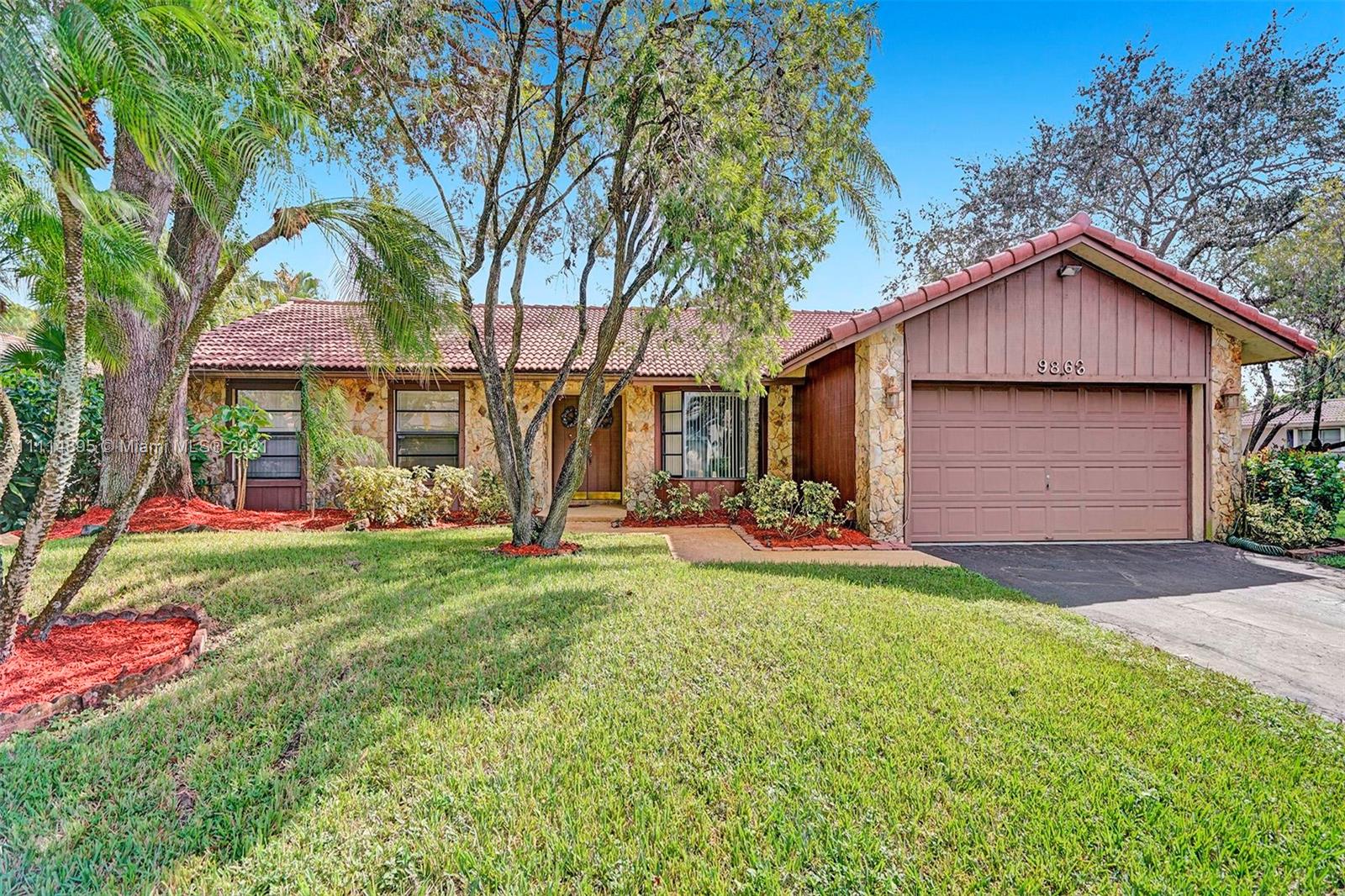 MUST SEE. Beautiful 4 Bedroom, 2 Bath Pool Home on a prime oversized corner lot in the sought-after Subdivision of Maplewood in Coral Springs with no HOA. This home is extremely light, bright, and airy and features volume ceilings, an eat-in kitchen with granite countertops, a sunken living room, a family room with bar and custom wood planking on the walls, a formal dining room or bonus room, making this home perfect for entertaining or family gatherings. The kitchen, family room, and Master bedroom all open via sliding glass doors to the large covered patio and screened-in pool area. Close to everything, including nightlife, restaurants, shopping, and walking distance to Dede Gilmore and Ralph Diaz Memorial Parks. Schedule your showing today before this home is gone!