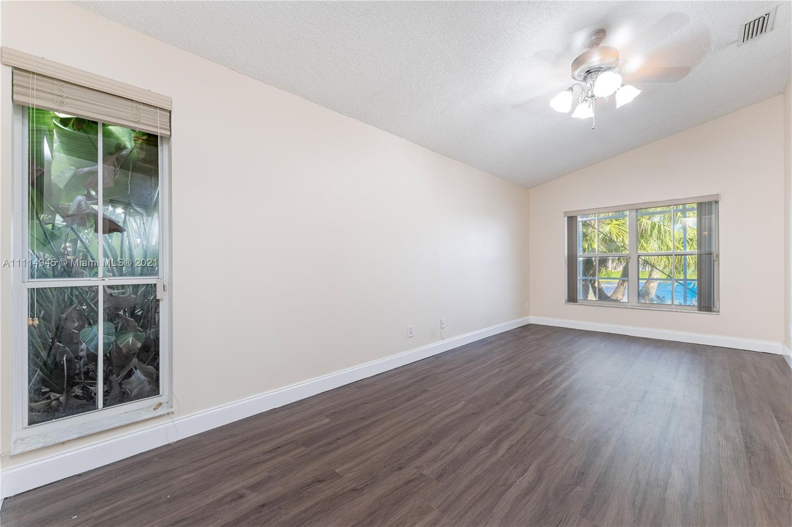 The Excel model one-story single-family corner lot lakefront home with open kitchen floorplan, vaulted ceilings, features 3 bedrooms, 2 full baths, 2 car garage, NEWER Roof replaced 2018, NEWER Air Conditioner replaced 2016, NEWER 2019 water heater, 2020 Stainless Steel Appliances, Air ducts replaced 2018, Accordion Shutters throughout, Enclosed screened extended patio with great lake views. Low HOA fees include Comcast Xfinity XI digital cable TV, 5g High-speed internet, Chapel Trail landscape of common areas, Access to Rose Price Park, Excellent School district, Close to LA Fitness, Publix, Walmart's, and major highways