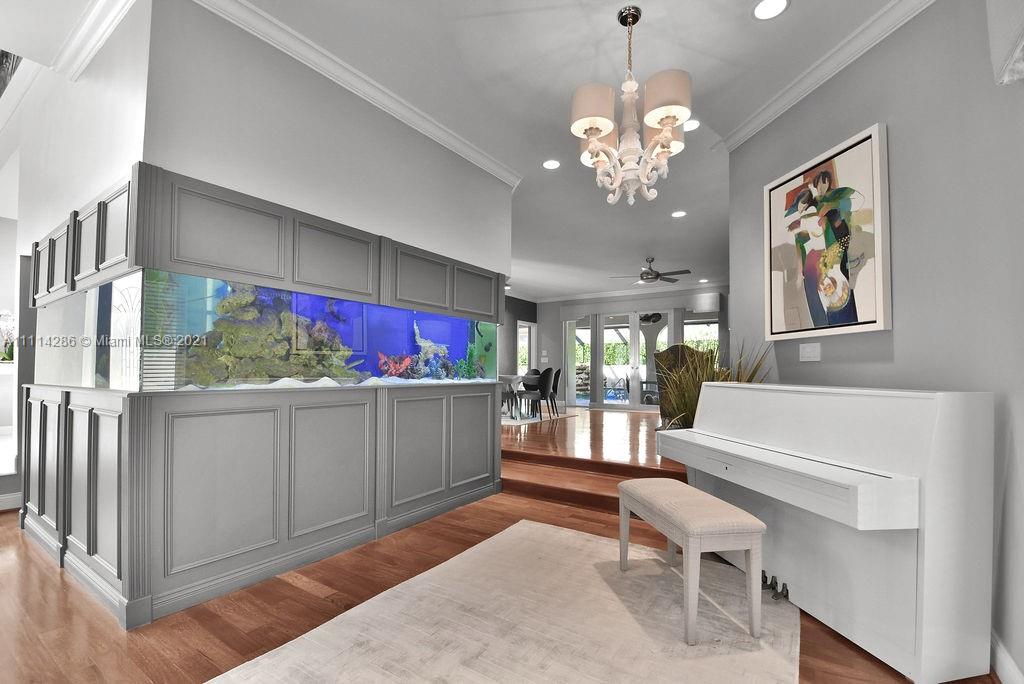 5 Bedroom 4.5 bath - 2 Story Pool Home Located in the Private Gated Community of Maplewood Isles in Coral Springs. This home features designer finishes and fixtures, Built-in 500 Gallon Salt Water Aquarium, Polished Wood Floors, Hurricane Impact Windows, Butlers Pantry, Game Room, Gym, Screened-in Heated Pool with Waterfall, Owner's Suite with separate seating/reading area, Ensuite with Spa Style tub and Full Body & Rain Shower System, Manicured Lawn and Landscaping. Ring Doorbell and camera system. This home offers all the luxuries of entertaining along with the privacy of work from home. Escape to South Florida and Have Every Reason To Want To Live, Work, and Play at Home.