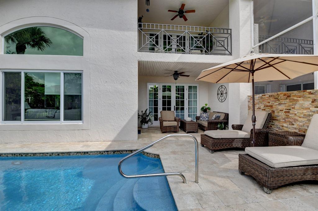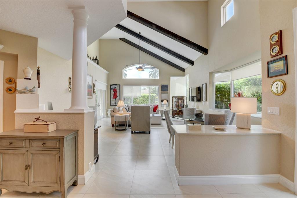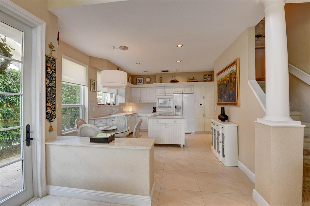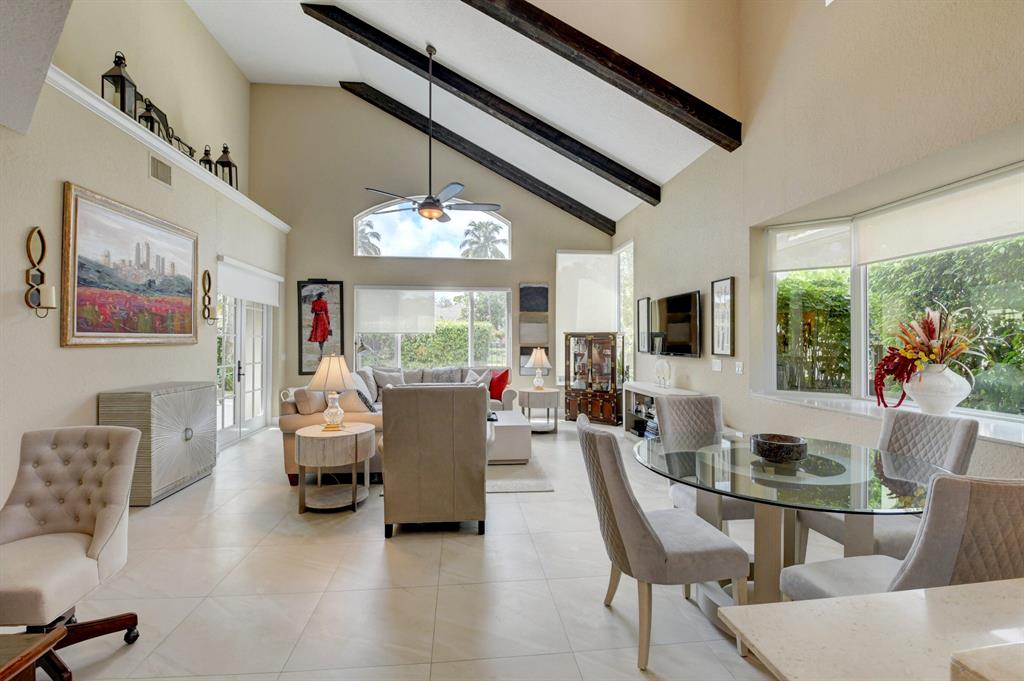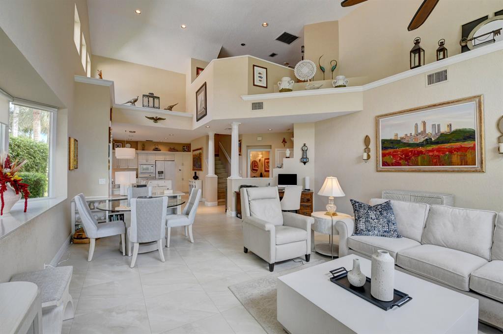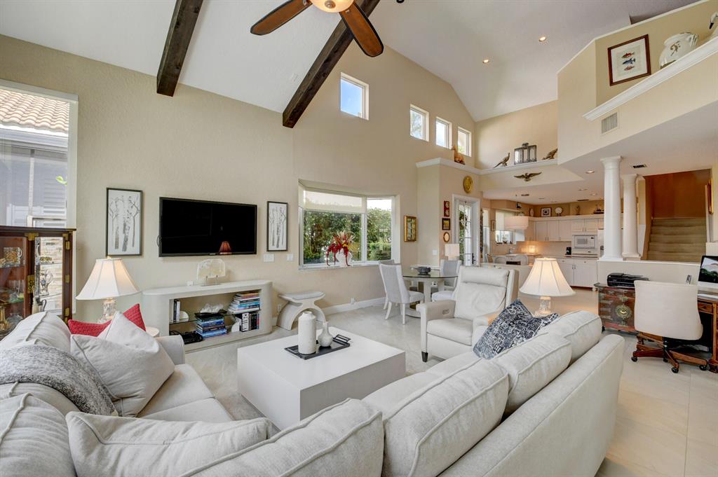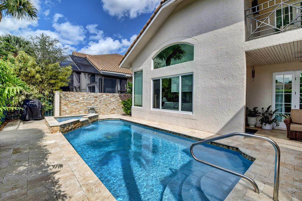 This breathtaking townhome is located within the exclusive award-winning Broken Sound Country Club. Remodeled in 2017, this 3-bedroom 2.5 bath home features the master bedroom down with beautiful wood flooring, custom closets and a clawfoot soaking tub in the master bathroom. The open concept living room and kitchen feature high volume ceilings, 24X24 tiles, lots of natural light, fresh paint, impact windows & French doors, remote blinds, beautiful wood beams and quartz countertops. Upstairs you will find 2 guest suites, wood flooring, an open loft/office area and a private balcony. Relax out back in your own tropical paradise that features a heated pool with spa and a custom waterfall all powered with new automated equipment. Act now it won't last long! Mandatory membership $80k-$90k.