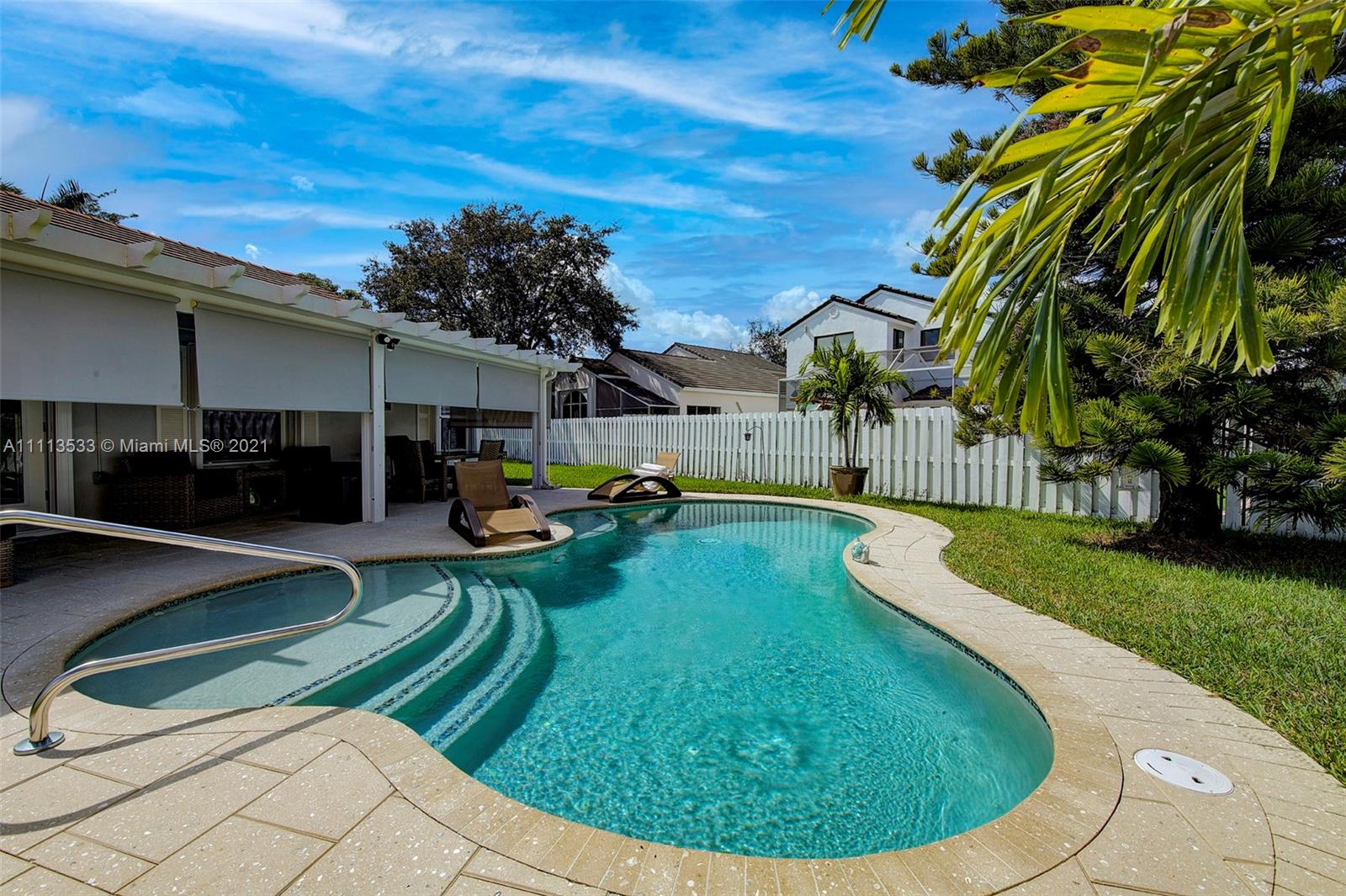 Beautiful Single Family Home with a new pool. 1 story single family home with 3 Bedrooms and 2 Baths located on a large cul-de-sac in the desirable community of Brittany Bay in Silver Lakes. The entire home has been upgraded with new flooring, granite countertops, stainless steel appliances, marble, and tile bathrooms, new lighting throughout, and plantation shutters. Fenced 8036 SF lot with 30' covered patio. Custom built-ins in kitchen. All appliances included. Perfect family neighborhood. Excellent schools. Centrally located near highways, shopping, restaurants, hospitals, banks, etc. This is where you want to live. Community pool, walking trails, parks.