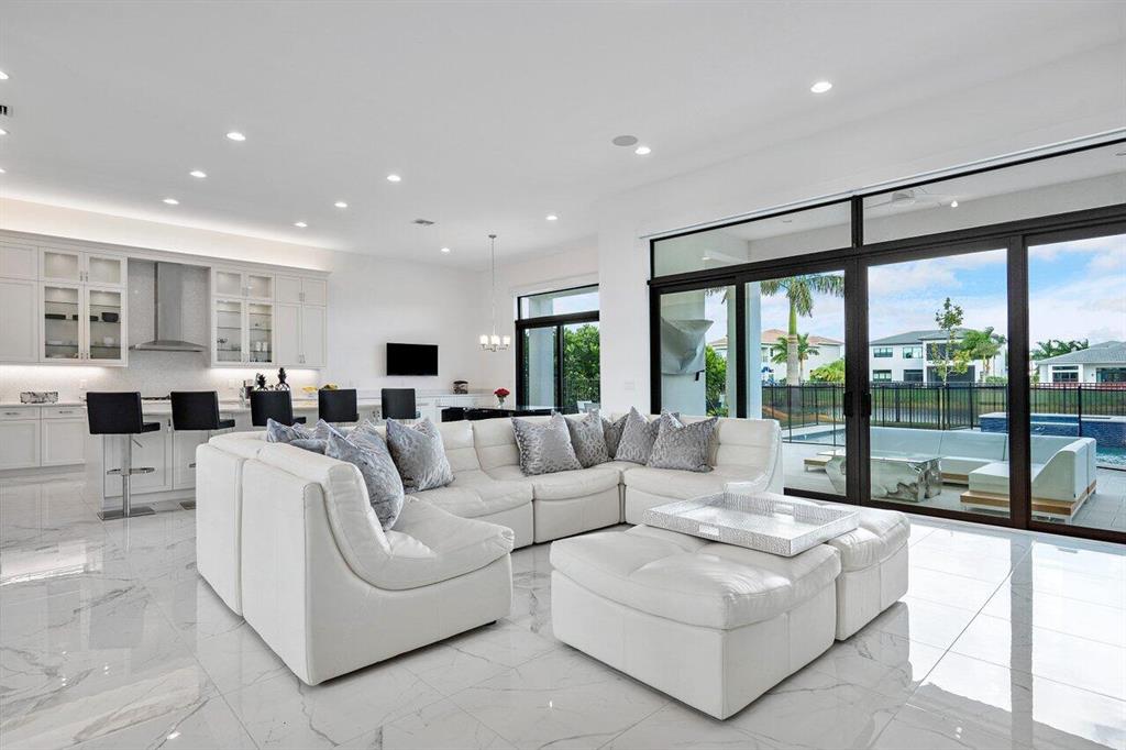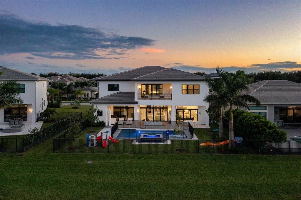 New transitional contemporary home in the community of Boca Bridges built in 2020. This gorgeous 5 bedroom home is situated on a generous lot with lake views and features a designer chef's kitchen with quartz counter tops, subzero fridge and double wolf ovens, porcelain and hardwood flooring throughout, wet bar, large pool with spa,upstairs loft, and sizable clubroom for entertaining. Other features include two 2 car garages, interior and exterior security cameras, motorized shades throughout the home, and so much more.