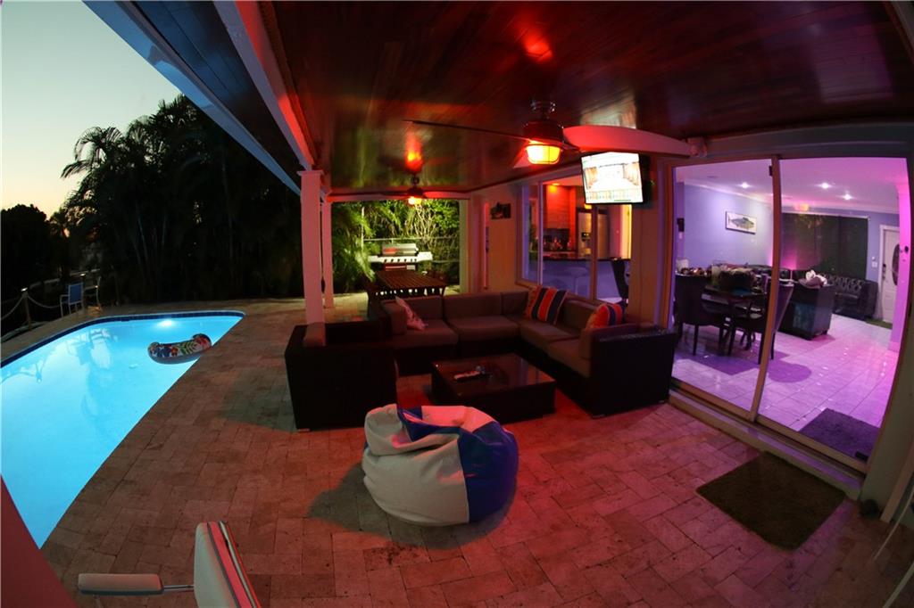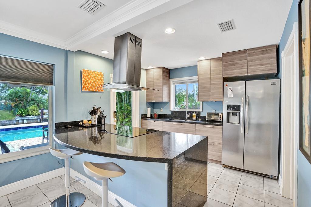 Absolutely stunning waterfront pool home in Flamingo Park! This property offers 70' of waterfront ocean access with no fixed bridges. The seawall and dock were redone in 2016. Enjoy tropical living at its finest with incredible indoor/outdoor living. The very private and fully fenced back yard boasts a large travertine deck, heated pool, covered sitting & dining area with incredible canal views. The interior features an updated open kitchen with s.s. appliances, contemporary laminate lacquer cabinetry & waterfall island top, neutral tile flooring throughout, high-end full home Marantz Sound System, smart home LED lighting, updated bathrooms, 2016 A/C and much more! Lots of large windows throughout flood the interior with natural light. This is the ideal home for the boating enthusiast!