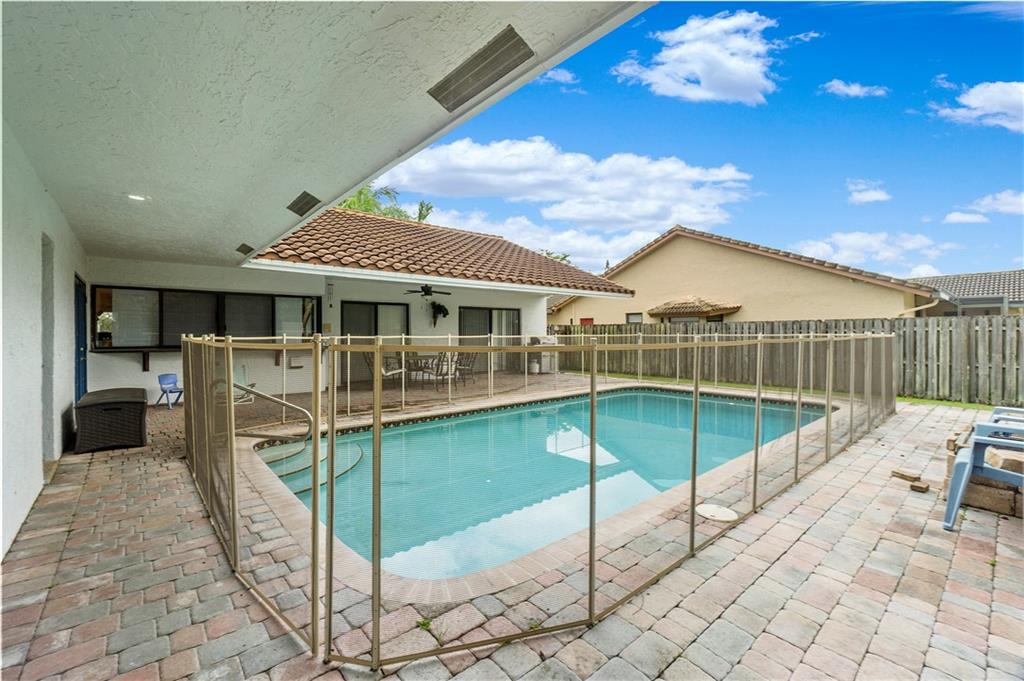 Sought after home in Pine Landing of Cypress Run. Home boasts 4 bedrooms, 2.5 bathrooms with formal dining and living rooms, laminate wood flooring throughout, generous size bedrooms and vaulted ceilings. Open kitchen with granite counters and maple wood cabinets with pass through to patio area. Large, fenced in backyard with sparkling pool and outside shed. NO HOA, Roof 2017, partial impact windows.
