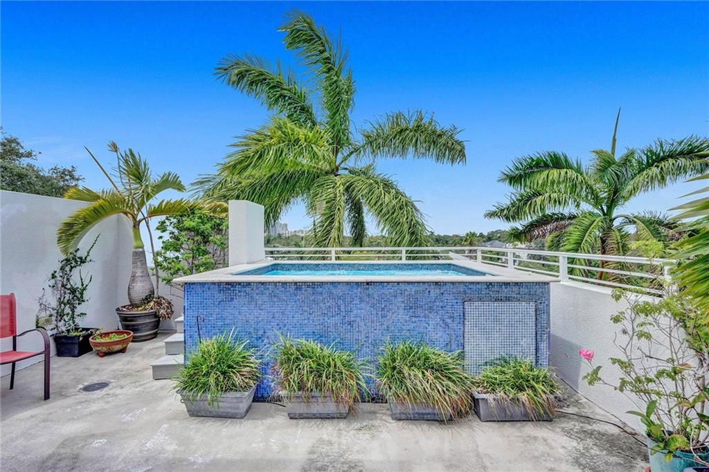 Bright airy corner unit with tons of light! 3 bedroom/3.5 bath. Custom Italian kitchen cabinetry & backsplash w/ rare Persian Arba granite waterfall countertops, high end appliances including wine cooler and brand new Tuscan steel refrigerator (under warranty). Upgraded tiger-striped rosewood bathroom cabinets. Impact windows and doors. On-Q LeGrand sound system equipped throughout the home. The fourth floor leads to your private roof terrace w/ amazing east and downtown skyline views along with large heated plunge pool/spa, summer kitchen with gas grill. Securely located in a gated community with 2 car garage. This multi-level home comes equipped with a ThyssenKrupp elevator making this home perfect for all generations and needs. Do not miss this stunning townhome!