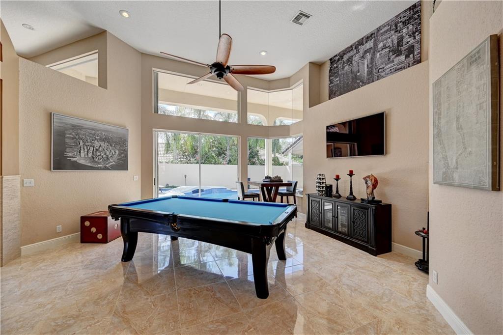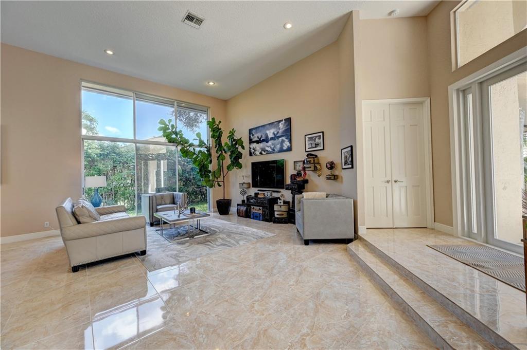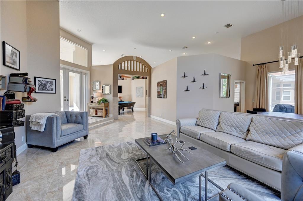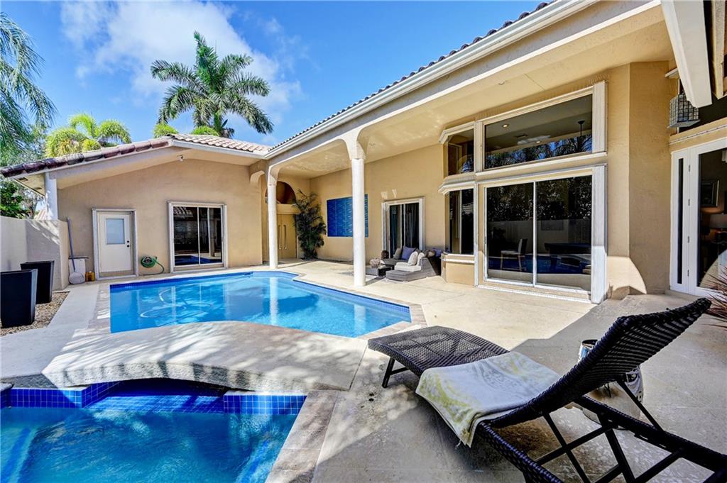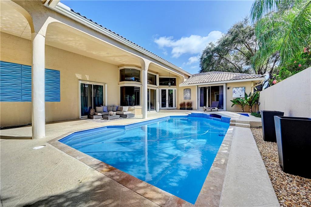 Stunning courtyard 4/2.5 + 1/1 In-Law suite = 5/3.5 home in highly sought after guard-gated Eagle Trace! This home boasts a covered patio overlooking the pool & spa, perfect for entertaining on warm Florida nights+ bonus screened-in patio off kitchen. Grand entryway greets you w/Porcelain tile floors, formal living room, updated eat-in kitchen w/wood cabinets, granite & SS appliances, sought after split floor plan, 5 sliders provide tons of natural light, high volume ceilings w/recessed lights, spacious Master suite w/tray ceiling, laminate floors, custom walk-in California closet system, dual sinks & separate tub/shower, all bathrooms have been updated and large laundry room. Room for your dogs to roam! 2020 Impact garage doors, accordion shutters, 2015 AC system. Low HOA fee!