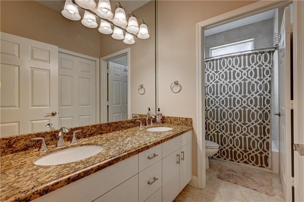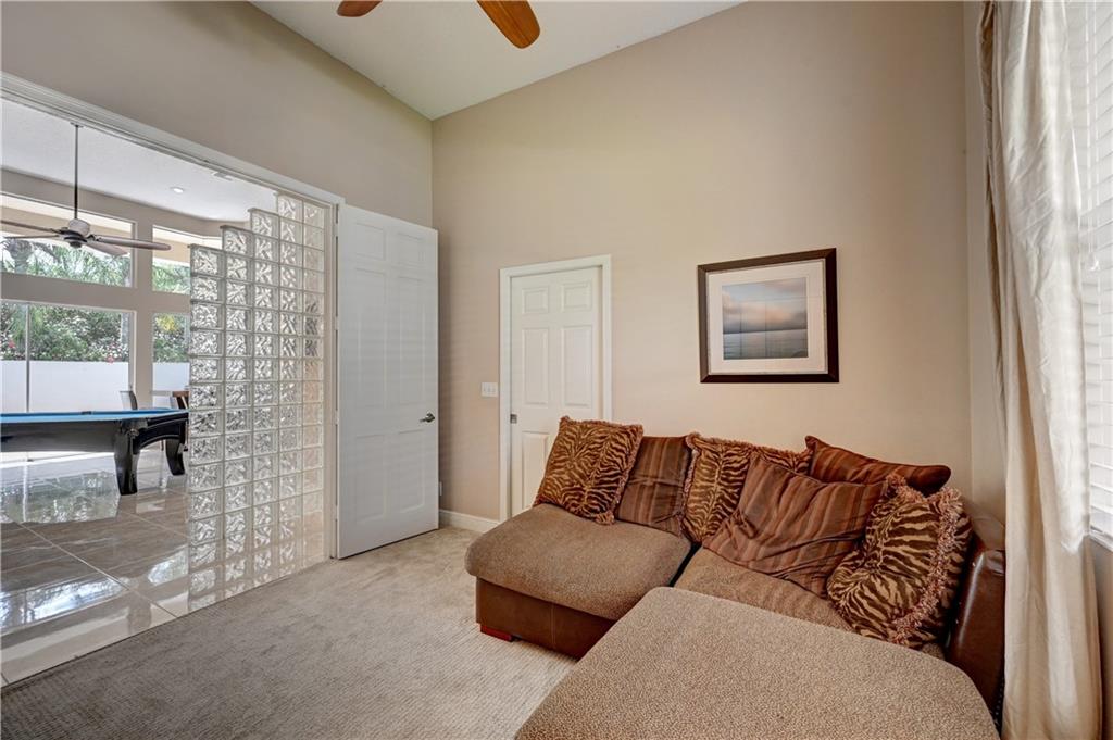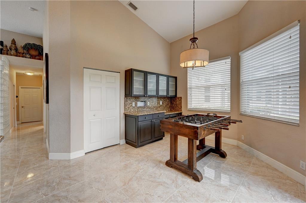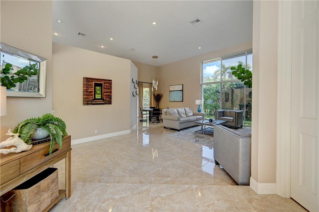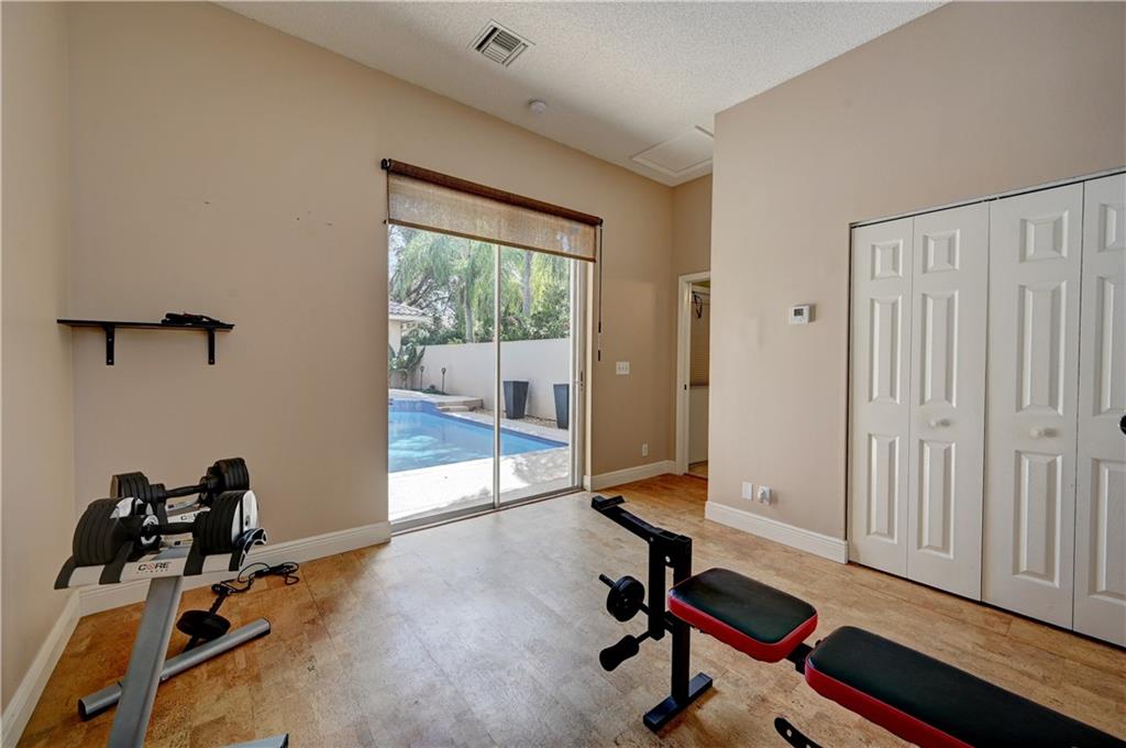 Stunning courtyard 4/2.5 + 1/1 In-Law suite = 5/3.5 home in highly sought after guard-gated Eagle Trace! This home boasts a covered patio overlooking the pool & spa, perfect for entertaining on warm Florida nights+ bonus screened-in patio off kitchen. Grand entryway greets you w/Porcelain tile floors, formal living room, updated eat-in kitchen w/wood cabinets, granite & SS appliances, sought after split floor plan, 5 sliders provide tons of natural light, high volume ceilings w/recessed lights, spacious Master suite w/tray ceiling, laminate floors, custom walk-in California closet system, dual sinks & separate tub/shower, all bathrooms have been updated and large laundry room. Room for your dogs to roam! 2020 Impact garage doors, accordion shutters, 2015 AC system. Low HOA fee!