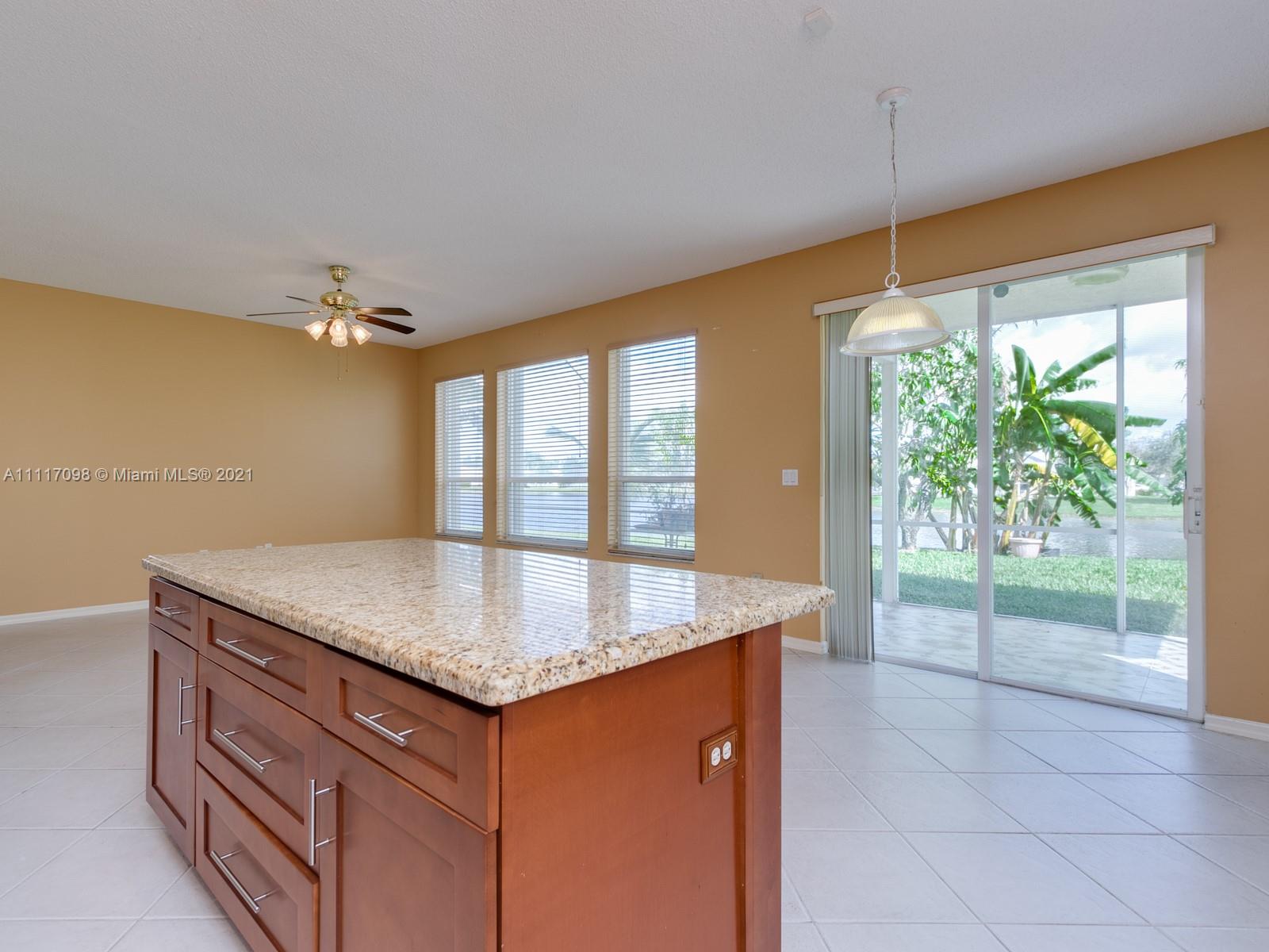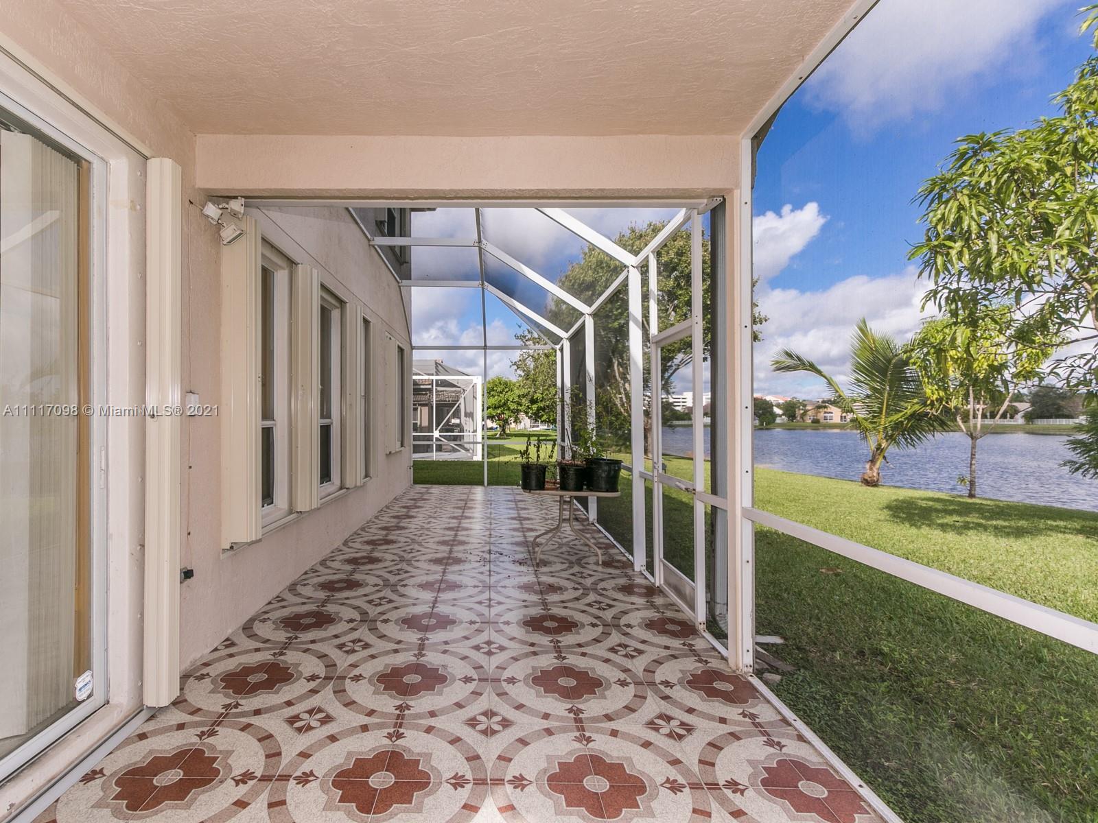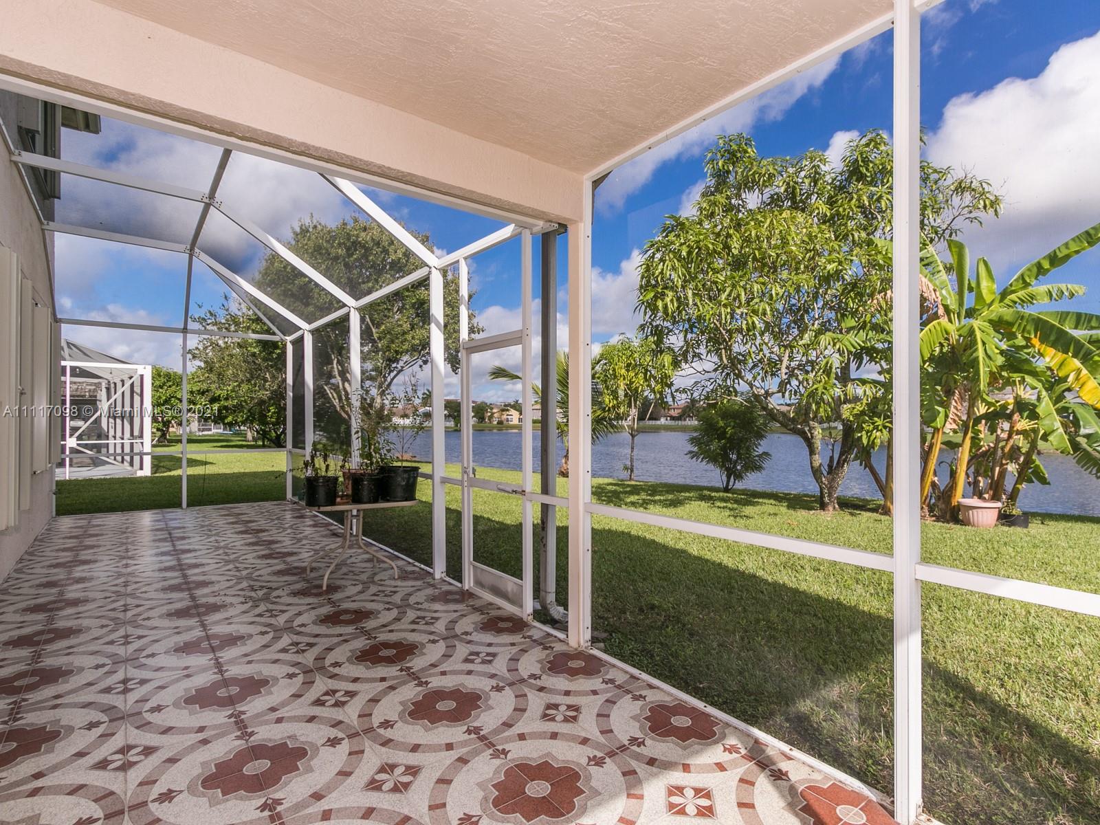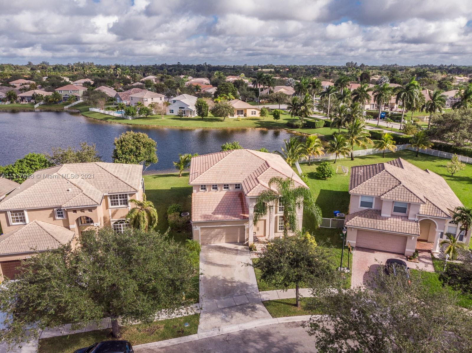 Stunning 4 bed 3 bath lakefront home in sought after Pembroke Falls. Updated kitchen with all wood cabinets, granite countertops and stainless steel appliances, tile and laminate flooring, screened in and tiled back patio over-looking the lake. Accordion shutters, 2 car garage, resort style community recreation center and fabulous pool. Pembroke Falls is a 24 hour guard-gated community. This beautiful home boasts Mango tree, Gauva, Plantain, Moringa, Pinwheel flower, Curry leaves and Jasmine. Showings begin on Friday the 29th from 4pm-7pm and Saturday from 1-4pm by appointment only. Please schedule in ShowingTime