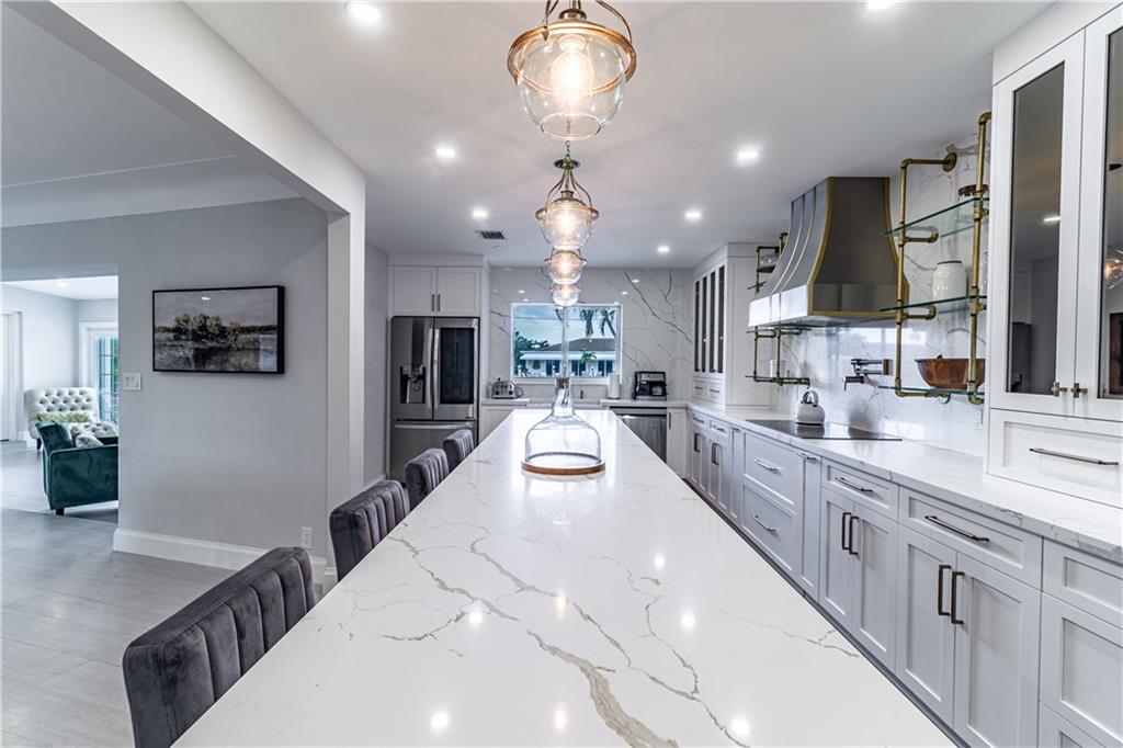 Welcome to the market this stunning newly renovated modern home. This 3 bed 3 & 1/2 bath was constructed with high end designer finishes with attention to every details. The home has an open split bedroom floor plan, waterfront dockage, and located in highly desirable neighborhood. The open-concept kitchen, living space, and large backyard overlooking the water, gives plenty of room for the whole family to enjoy. Recent updates include new flooring, roof, electrical, plumbing, air ducts, appliances. Situated in East Fort Lauderdale this waterfront home has everything and won’t last.