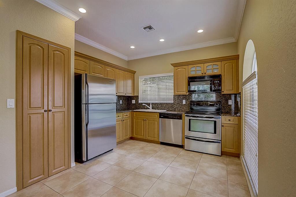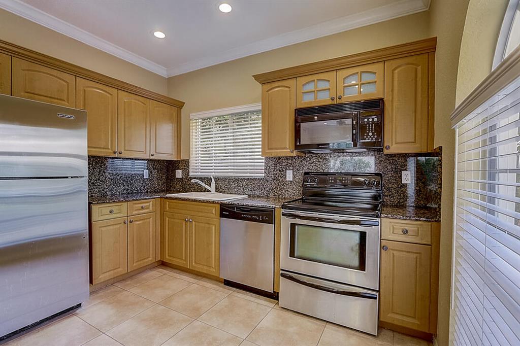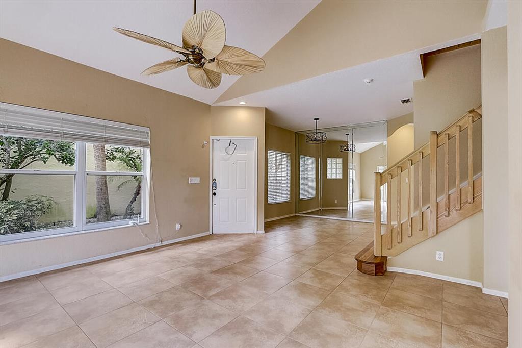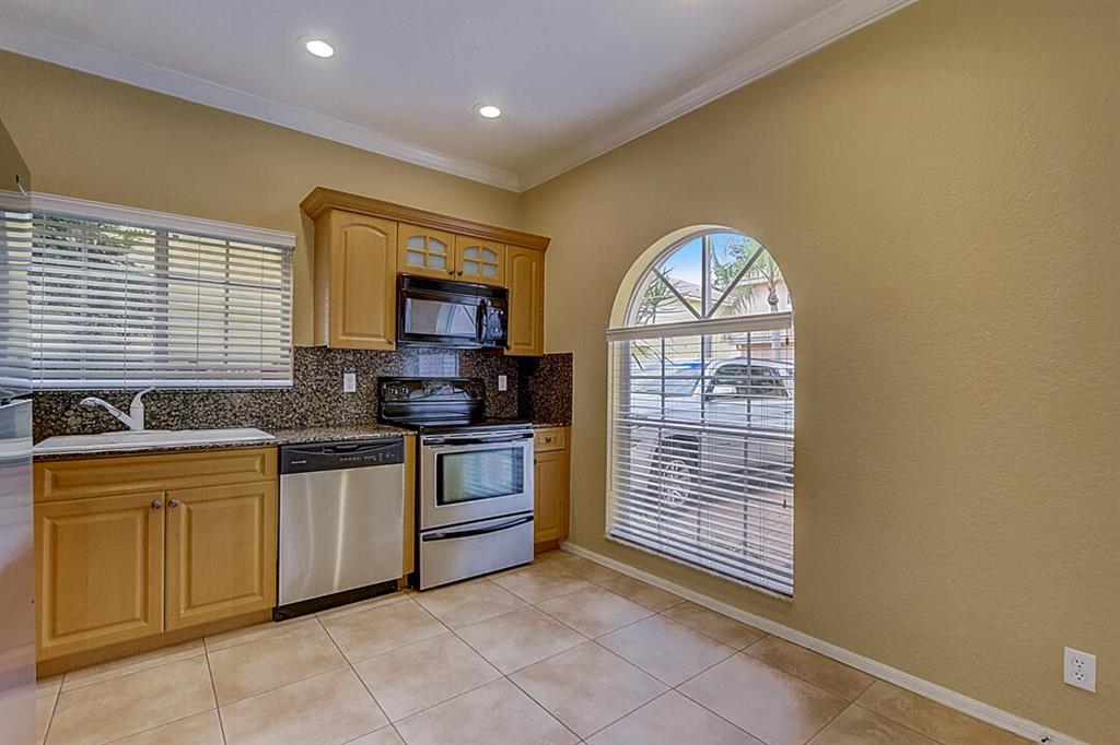 This Boca Raton two-story home offers a patio, granite countertops, and a one-car garage.