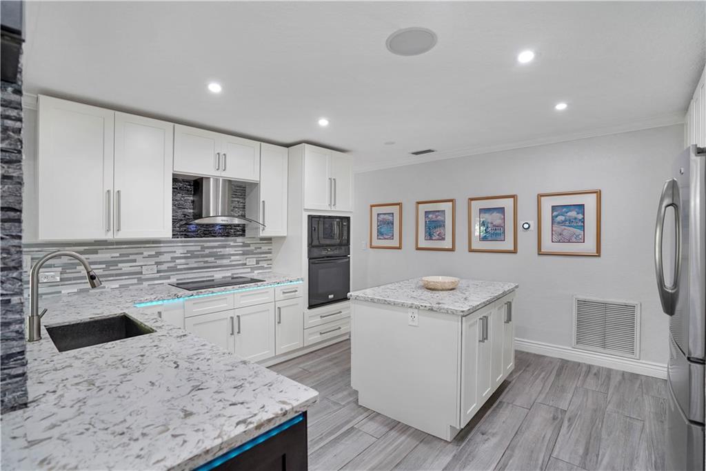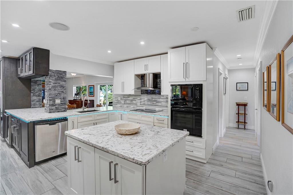 Newly Remodeled Split Floor Plan 4 bedroom, 2 bath, Waterfront Pool home in Coral Springs. Open floor plan including new expanded kitchen with induction stove & convection oven, quartz counter tops, 2 custom islands with bar & wine fridge, perfect for that large family & entertaining. Both bathrooms remodeled. All new wood work including crown molding & baseboards, new wood-look porcelain floor. Covered lanai & private fenced yard w/plenty of space. NEW: Jacuzzi & Pool Pump, Flat Roof, electric panels, tankless W/H & LED lighting. Top of the line security camera system & 17 speaker full Home Sound system, New extended paver driveway. Boat or trailer parking seldom found in Coral Springs, Impact sliding doors & front door, No Popcorn, NO HOA, cast iron sewer lines replaced with PVC.