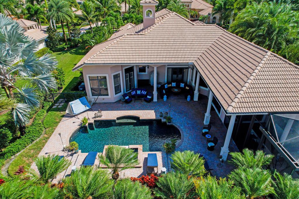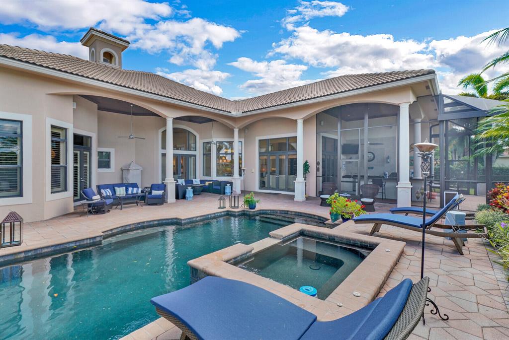 Premium WATERFRONT lot and top-tier upgrades in this ONE-OF-A-KIND, DESIGNER-DONE, CUSTOM estate in highly desirable Bay Pointe. This 4BR + Office + Bonus Room / 5.1 BA / 3-Car Garage Dreamstar custom home overlooks wide water views with four holes of Nicklaus golf in the distance. Enjoy magnificent sunsets from the resort-like backyard. The over-sized, screened-in outdoor dining space features a large outdoor kitchen and cedar ceilings. With a Western exposure and 100 feet of premium water frontage, the dramatic pool and spa area boasts one of the most dramatic views in Ibis.
