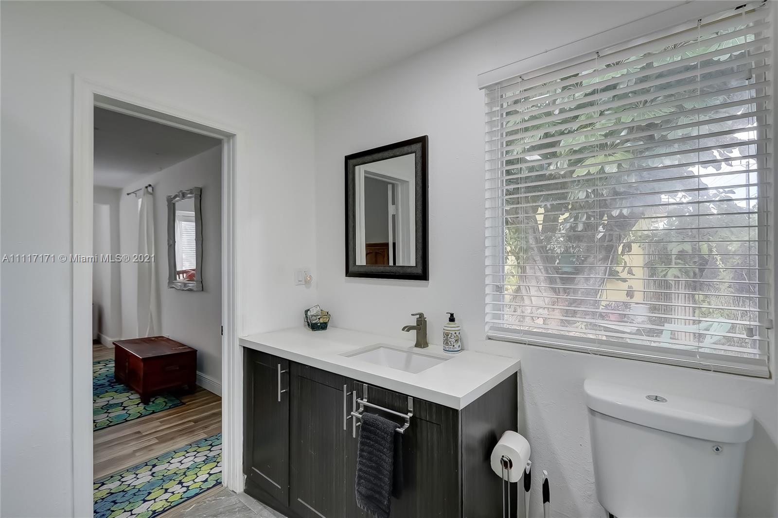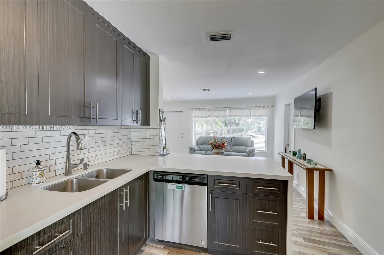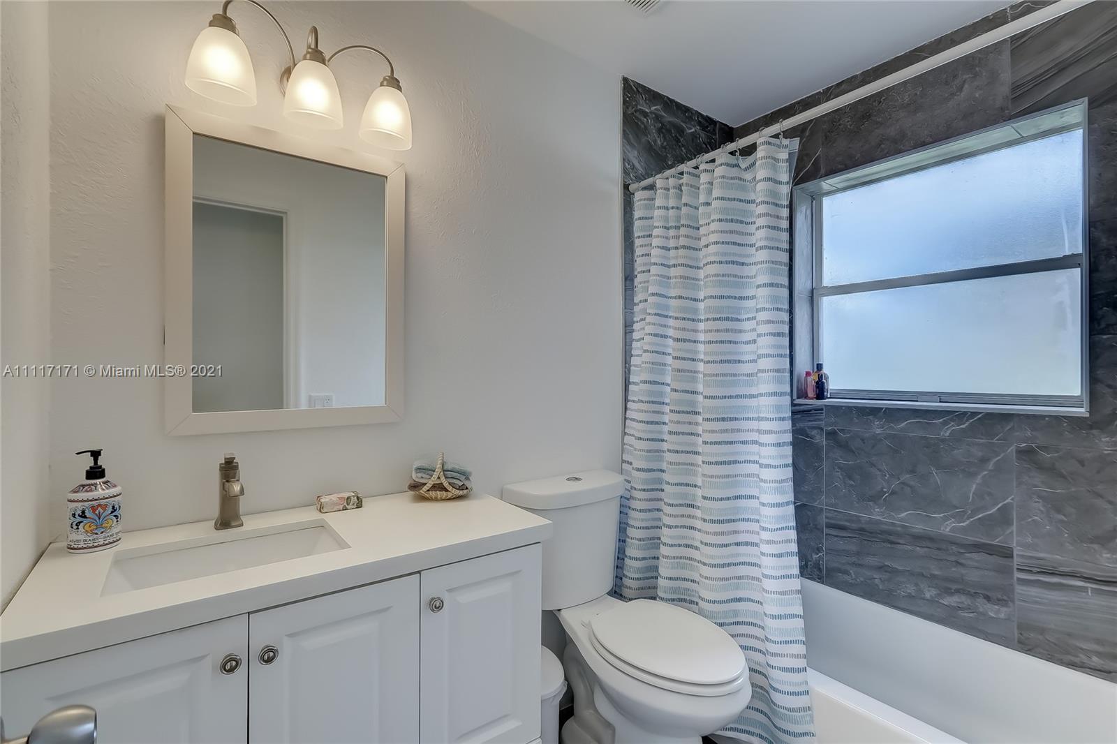 Elegantly remodeled 3 bedroom/2 bathroom home in the desirable area of Cresthaven in Pompano Beach with NO HOA!! All updates look like they are right out of a home magazine! Beautiful grey wood laminate flooring, modern custom kitchen featuring wood cabinets, waterfall quartz countertops and subway tiles. All appliances are less than 5 years old! Completely remodeled bathrooms from top to bottom! Custom vanities, quartz countertops and updated shower tiles in both bathrooms! Extras include a tankless water heater and spacious laundry room! Big backyard with room for a pool, covered terrace perfect for entertaining & aluminum shed for extra storage.