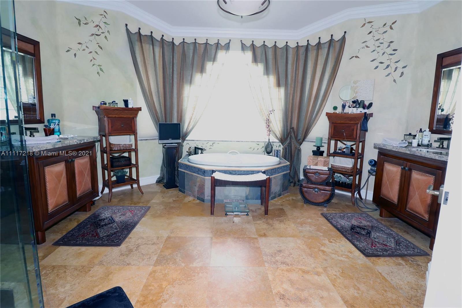 Four bed-3 bath, NEW impact Doors+Windows+Hurricane shutters. Remodeled: kitchen, new appliances (KitchenAid-2018), 3 remodeled bathrooms, new luxury vinyl floor, Pergo in 3 bedrooms, engineered wood in the master bedroom, crown molding. Upgraded baseboards. Beautiful faux painting in the dining room, master bedroom and bathroom. Plantation shutters in living room, dining room. Upholstered living room wall. Ethan Allen window treatments in the tv room. Custom closets in bedrooms and pantry. Remodeled Laundry Room. Upgraded ADT alarm system. Tiled floor in 3-car garage with storage cabinets. New (2020) High Efficiency Air Conditioner, New (2018) Washer and Dryer. New Rachio electronic smart sprinkler. Pool, landscape lighting. Walking distance to ‘A RATED’ MIDDLE and HIGH SCHOOL.