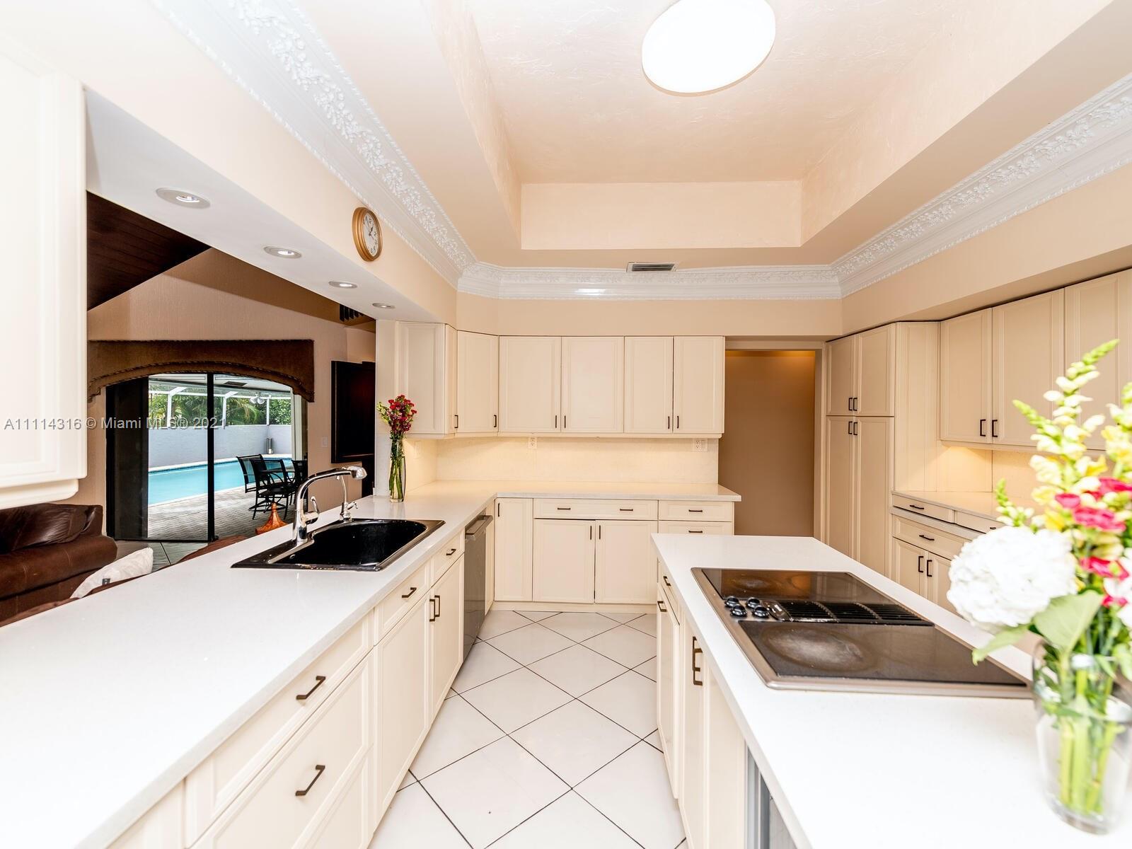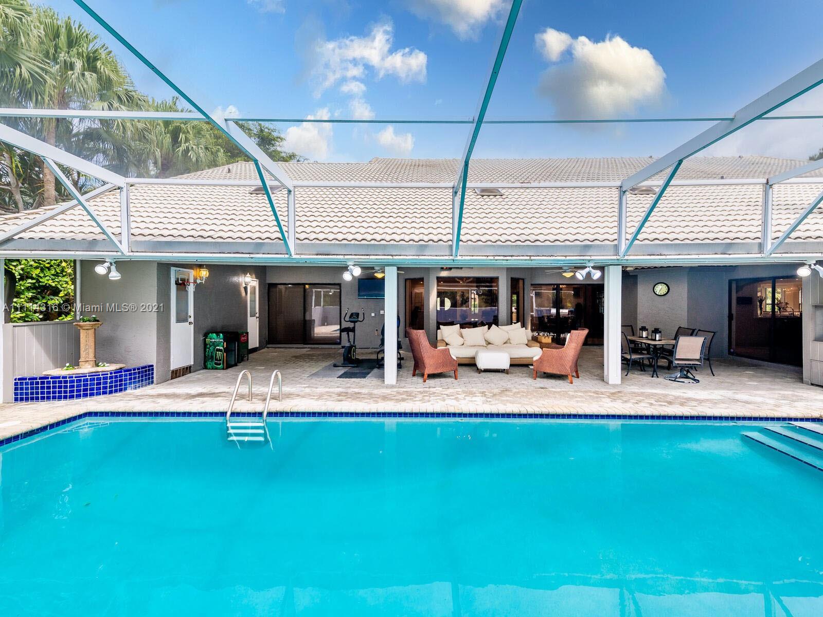 Unique & Spacious split-floor plan home nestled among the tree-lined streets of beautiful Maplewood Isle, a quite & private community of only 104 custom-built homes with 24/7 guard present at the gate. All 4 BD are downstairs, & each with en-suite BA. 2nd Floor is a loft with a walk-in closet. Primary BD has walk-in closets & a BA with dual sinks & separate shower/jetted tub. Remodeled kitchen with breakfast nook, SS appliances & wine cooler. Freezer & additional refrigerator are included. Family room features a real wood-burning fireplace. Front entrance leads to an open area with volume ceilings. This area includes a modern wet bar, living room and formal dining with a view of the patio/pool area that has a cabana BA & separate shower/dressing room. Washer & Dryer do not convey.