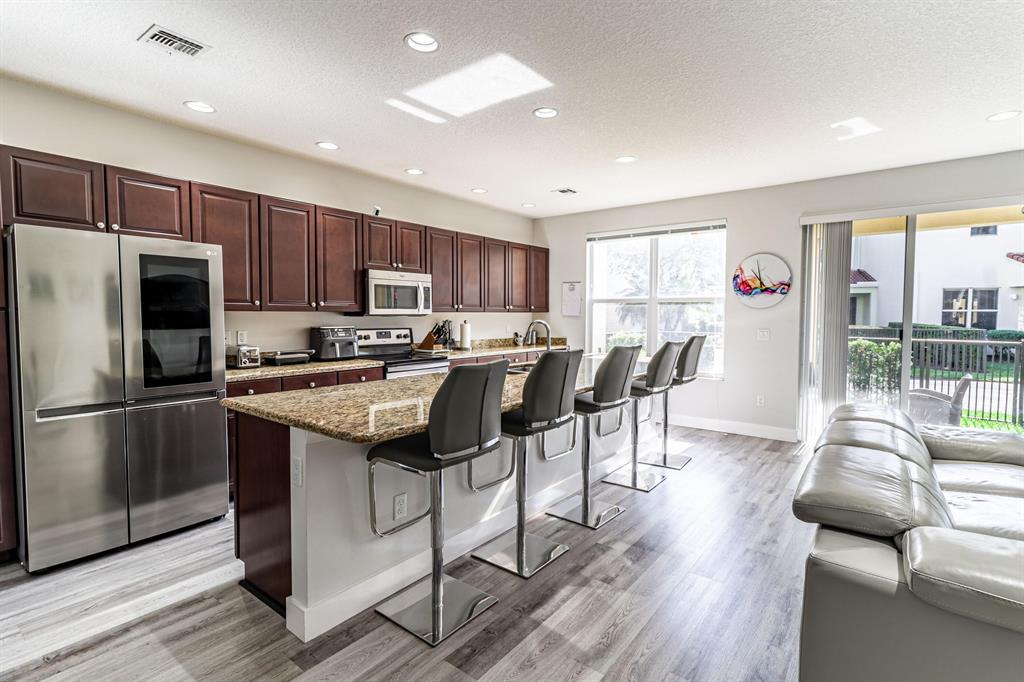 Enjoy the peace of mind and exceptional living you'll find in this townhome, located just minutes from the Boca Raton waterfront in the desirable Centra Townhomes. Here you'll find whole-house impact glass for enhanced storm protection, plus updated fixtures and finishes throughout open-concept living space. Huge entertainer's kitchen features upgraded stainless steel appliances and granite countertops with massive seated center island and nearby covered terrace for outdoor grilling, dining, and entertaining. Upper-level landing includes loft area, perfect for add'l gathering space. Large owner's suite features en suite bath with double-sink and seated vanity, step-in shower, and relaxing jetted tub. Community amenities incl clubhouse w/ fitness studio, activity trails, pool, picnic area