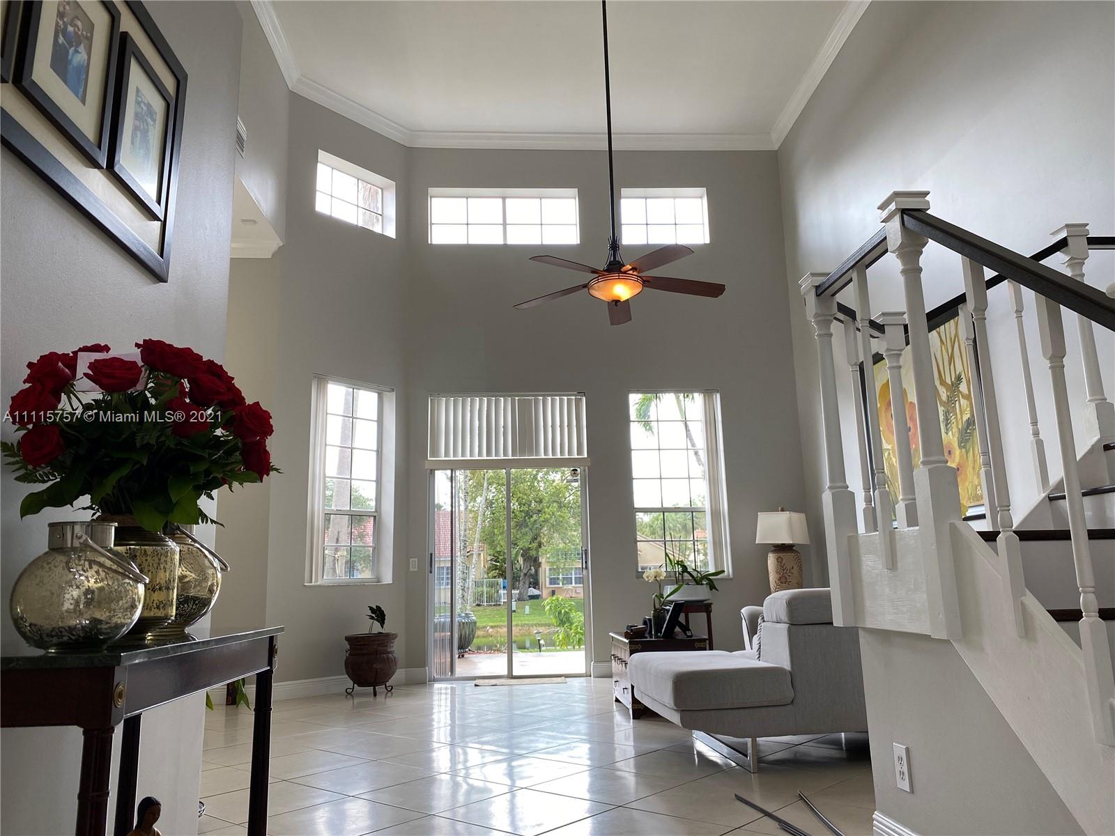 Enjoy the Weston lifestyle! This "meticulously" kept 3/2.5 home is located in the gated community of Hibiscus Island. Home is full of natural lighting with volume ceilings & serene water views. Master bedroom with sitting area downstairs. Home features newer roof (2019), accordion hurricane shutters (2020). Kitchen has been updated. Staircase & upstairs flooring (2019). Interior doors/hardware installed & interior/exterior of home painted (2019). Upstairs bath and ½ bath updated (2019). Built in closets (2018). Home has crown molding. Garage partially conv. to home office. Can be easily conv. back to garage. Steps away to community pool, child play area & BBall court. “A” rated schools, near Weston Town Center and easy access to I-75. Wonderful place to call HOME! This truly is a must see!