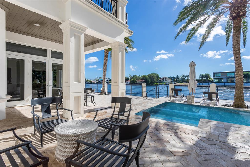 This 'Best of the Best' offering has a Direct Intracoastal 'Non-Wake' location with stunning east and southeast waterway views. Boat dockage exceeds 70 feet. Exquisitely updated and immaculately maintained, this residence features a first floor bedroom suite, with the primary bedroom (which features a full sitting room) and two additional bedroom suites, and a dedicated exercise room, on the second level. The foyer opens to spacious dining room and a two story great room with fireplace and bar. The newer kitchen opens to the family area and dinette, all overlooking the pool, patio and waterway. The marble paver pool patio, a covered patio area, barbecue, and pool which is being refinished complete the tropical paradise backyard area. See MORE for additional details...