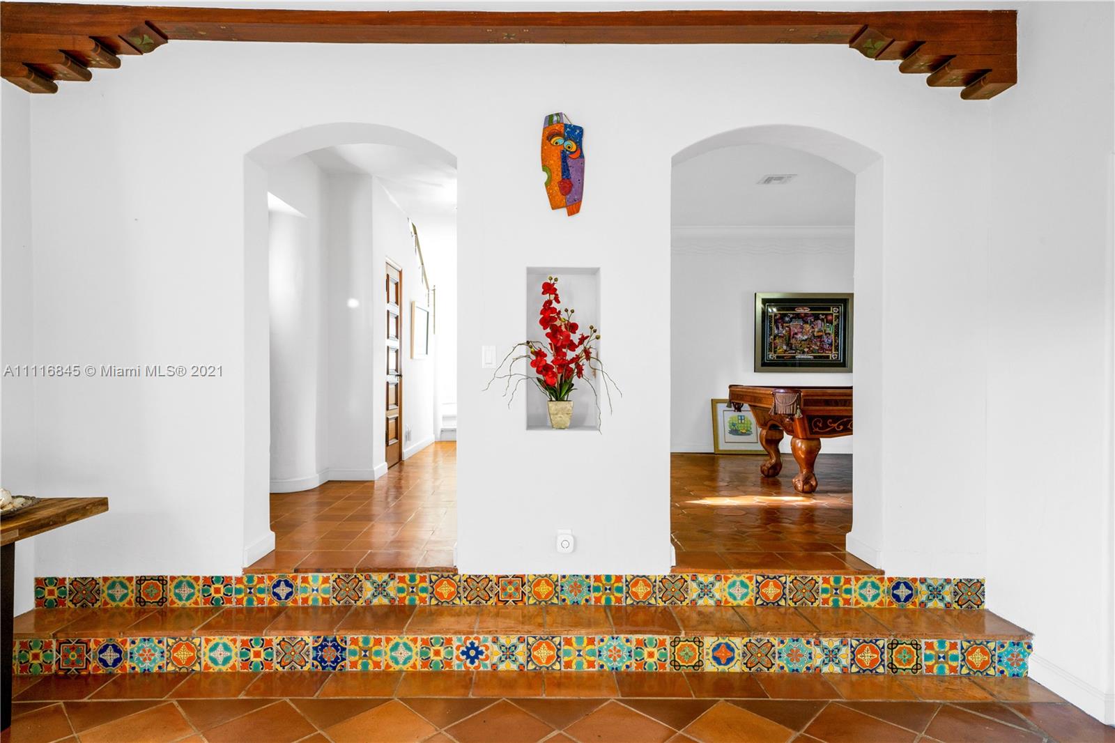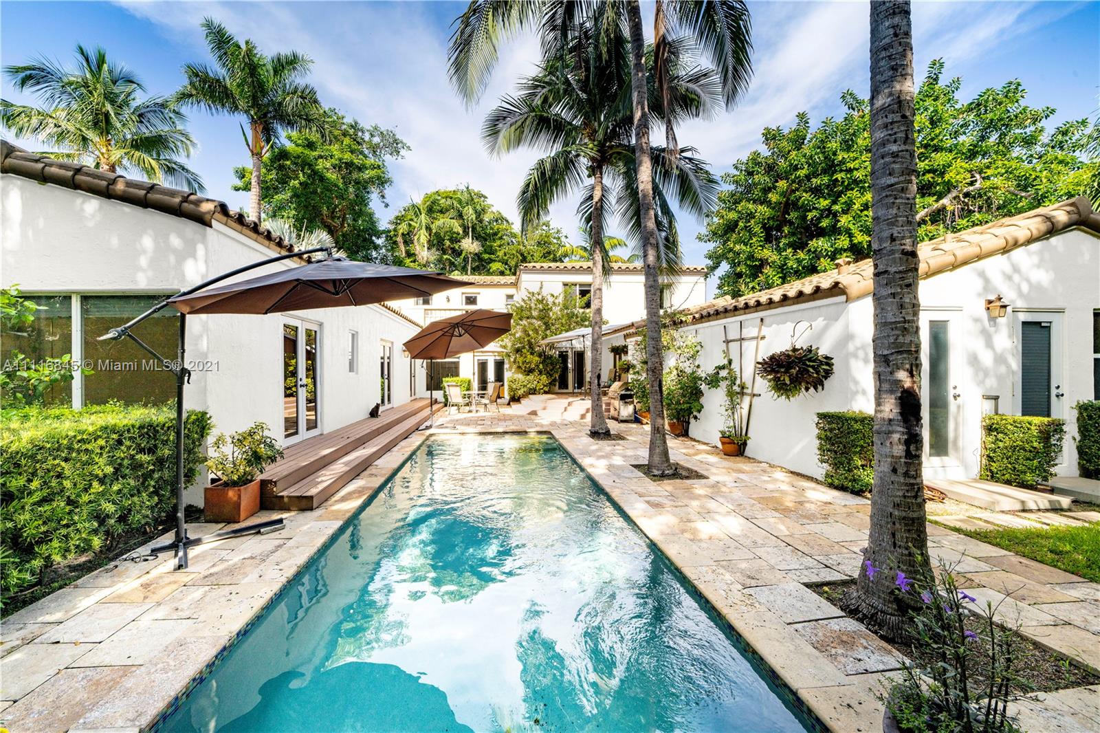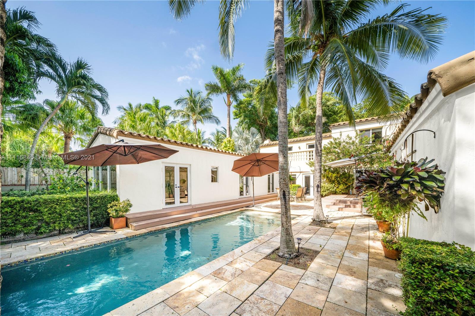 Rarely available, renovated stately Mediterranean villa, 5bed/5.5bath with pool home. Corner 9,639 sqft gated lot with tropical landscaping & very private pool area. Impact windows & doors throughout. 3 bedrooms upstairs with ensuite baths & outdoor balcony. Huge downstairs master suite with sitting room with his/her dressing room/closets. Modern open gas kitchen with top appliances that opens to family room. Huge dining room with tons of stunning architectural details and moldings. Attached 2 car garage with impact garage door and Chicago brick driveway which exits on quiet 51st St. 1bed/1bath guest or staff quarters. THERE IS A CONTINGENCY CONTRACT, WILL SHOW TO QUALIFIED BUYERS FOR BACKUP.
