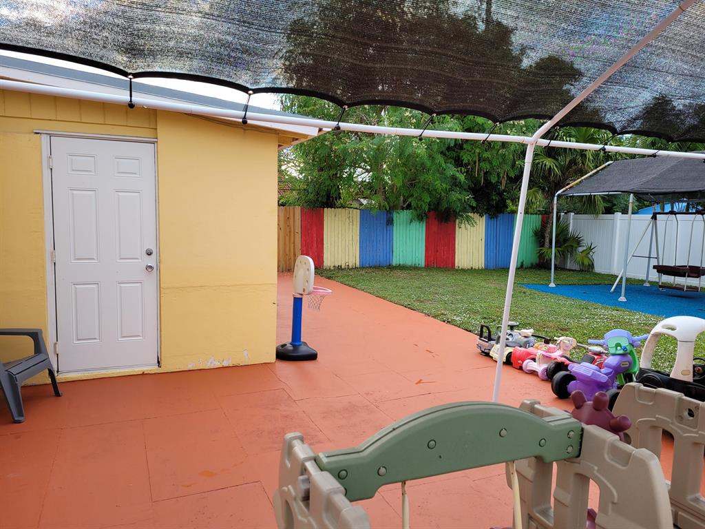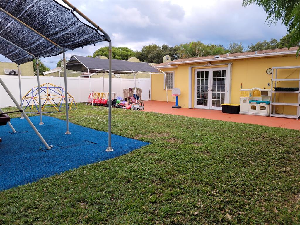 Lovely 3 bedroom home with a newly fenced yard in a quiet neighborhood, zoned for excellent schools! Split floor plan with a large master bedroom that was professionally converted from the carport. The second half bath was previously a full bath that can easily be converted back and connected to the master bedroom. Large kitchen area opens to the fenced back yard with plenty of room for a pool! Walking distance to grocery, dining, and the water! Fully hurricane protected with accordion shutters as well as partial impact glass and 15 KW Generator that can power the entire home. A/C and roof have plenty of life left in them. The home is currently used as a daycare and can be offered turnkey with daycare clients at a different rate. Great airbnb potential!