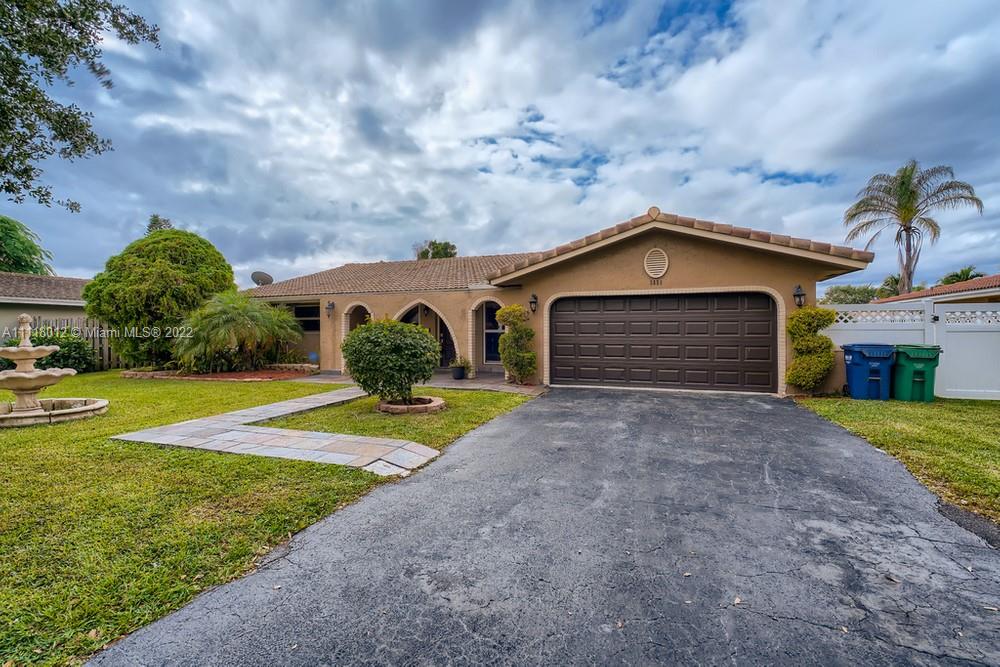 Prepare to fall in love with this 4 bedroom, 2 bathroom home in the heart of Coral Springs! A beautiful arched covered porch welcomes you as you enter the home. The living area is an entertainer’s dream with ample space and a dining area attached. You will love cooking in the chef-friendly kitchen featuring black countertops, generous cabinet space, and stainless steel appliances. Find relaxation in the primary bedroom that offers sleek flooring and an en suite bathroom with sufficient closet space. Take the entertaining outside to your manicured backyard that comes complete with a screened-in pool. Centrally located near several restaurants, shops, and highways, this is a home you will not want to miss!
