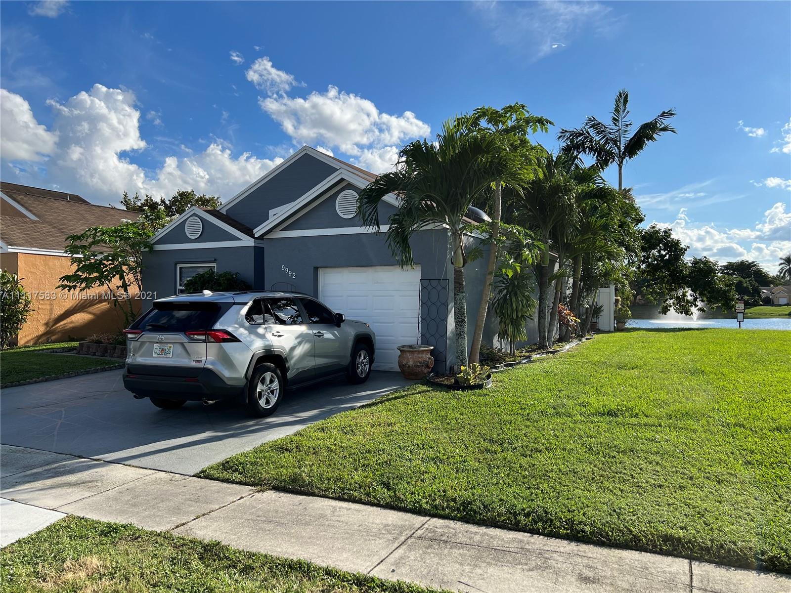 BEAUTIFUL WELL MAINTAINED 3 BEDROOM, 2BATH, CORNER SINGLE STORY HOME WITH HURRICANE IMPACT WINDOWS AND A GORGEOUS LAKEVIEW. VAULTED CEILINGS, SPLIT FLOOR PLAN, TILE FLOORING THROUGHOUT THE HOUSE. RENOVATED BATHROOMS. NEW A/C UNIT REPLACED IN 2019 & NEW ROOF IN 2015. PART OF THE GARAGE WAS CONVERTED. LOW HOA INCLUDES YOUR LAWN MAINTENACE, POOL & MORE. VERY CLOSE TO THE COMMUNITY POOL. THIS PROPERTY IS CONVENIENTLY LOCATED NEAR SHOPPINGS, RESTAURANTS, HIGHWAYS, SCHOOLS & PARKS.