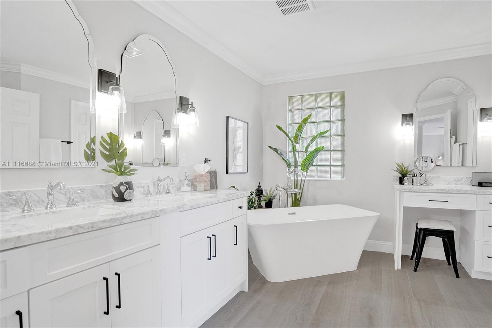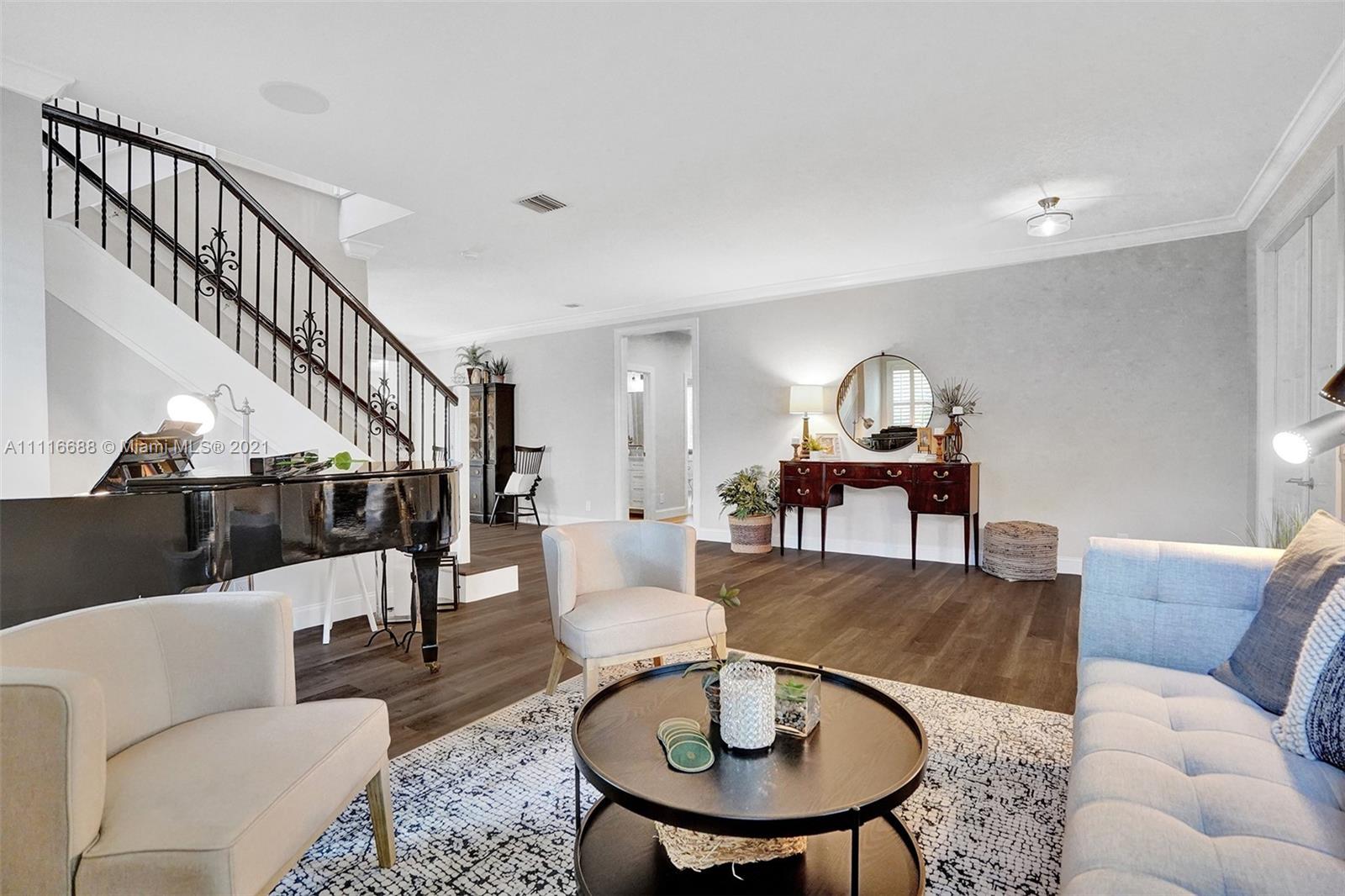RENOVATIONS GALORE IN THIS SPACIOUS HOME. ENJOY YOUR SOUTHERN EXPOSURE FROM YOUR PRIVATE FULLY FENCED TROPICAL LANDSCAPED WATER LOT WITH A HEATED POOL/SPA. EXPANSIVE PAVER PATIO WITH OVERHANG. MODEL CONDITION HOME RIGHT OUT OF HGTV. NEW FLOORING THROUGHOUT THE ENTIRE HOUSE. WHITE KITCHEN WITH QUARTZ COUNTERTOPS, STAINLESS STEEL APPLIANCES, CENTER ISLAND, AND MORE. EXTENSIVE CROWN MOLDINGS, FULL BED/BATH FIRST LEVEL. OVERSIZED MASTER BEDROOM WITH NEW OWNER'S BATH, COMPLETE WITH VESSEL TUB, CUSTOM WHITE CABINETS, MARBLE COUNTERTOPS AND GRAND SHOWER. CUSTOM LIGHT FIXTURES, PLANTATION SHUTTERS, WALK TO COMMUNITY PARK AND SOCCER FIELD.