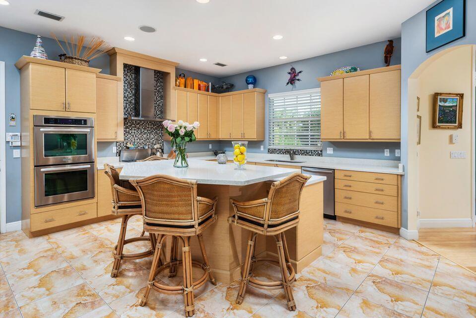 Stunning custom built home in the Southend, east of Olive and just a short distance to the Intracoastal Waterway. Designed to enjoy South Florida living at its best! Great for entertaining, indoor living flows seamlessly to the gorgeous outdoors. Covered porches and beautiful pool with fountains all surrounded by privacy wall. High ceilings, bamboo floors, open floor plan, hurricane impact windows & doors, formal dining room with tray ceiling and gorgeous kitchen. Custom cabinetry, Caesar stone counters, double ovens, 6 burner gas stove, 2 sinks, large pantry and plenty of counter seating. 2 large bedrooms downstairs. Master suite upsatirs plus den or 4th bedroom. Luxurious master bath, double vanity, tub and separate shower. Huge closets, lots of storage, over sized garage & generator!